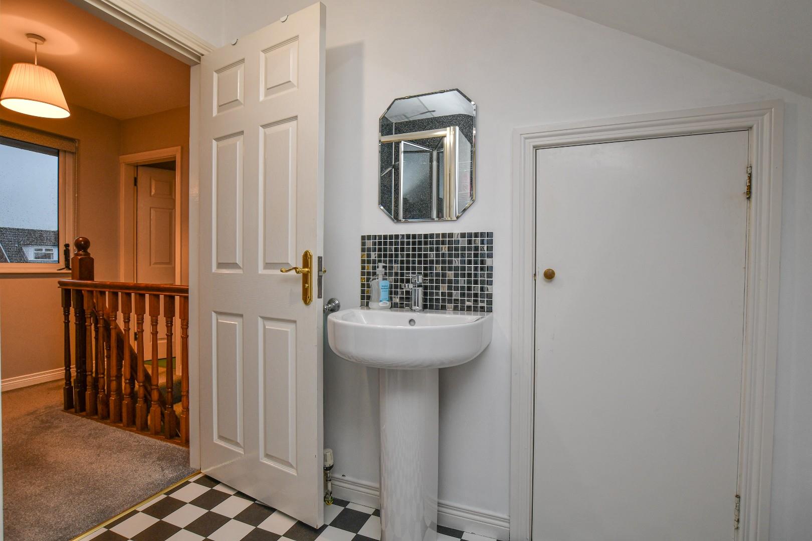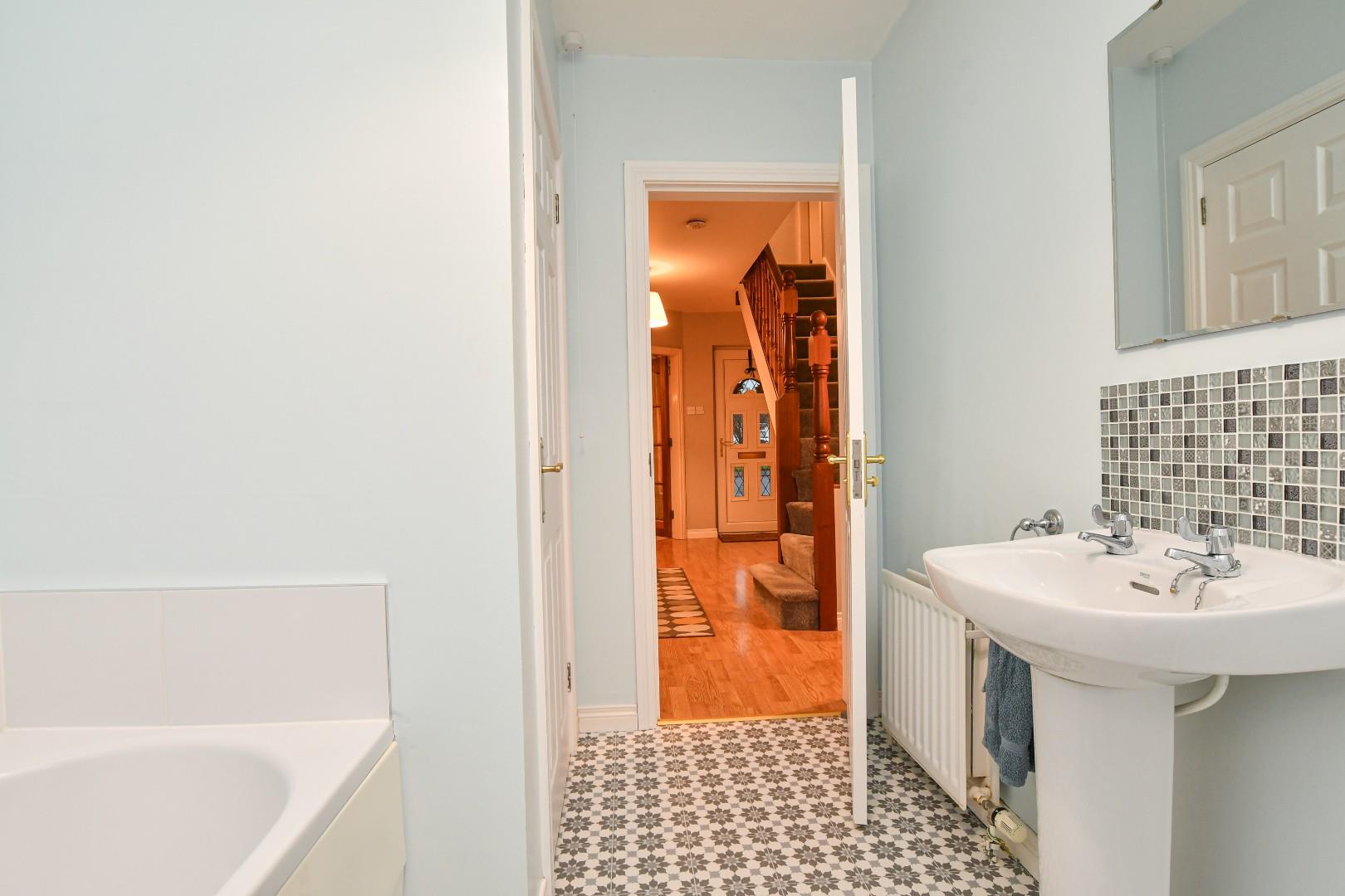 The property includes two well-appointed bathrooms, with a family bath on the ground floor and a shower room located on the first floor, catering to the needs of a busy household. The attached garage adds further convenience, providing ample storage or potential for a workshop.