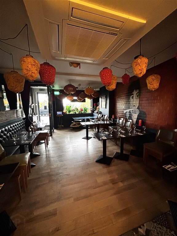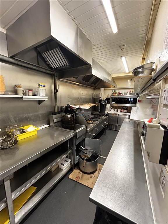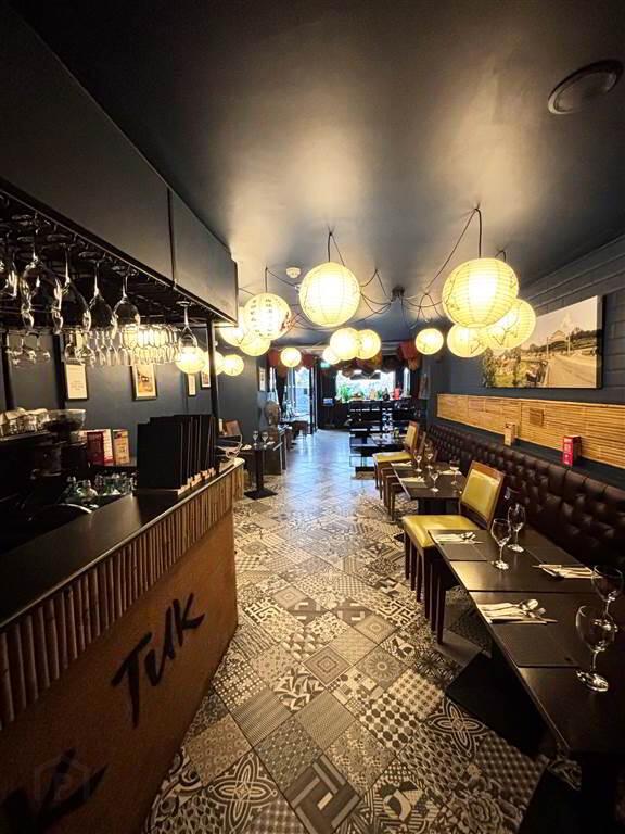 Previously operated as Tuk Tuk the property features a restaurant-style layout with built-in bench seating, a serving counter, and a fitted kitchen area equipped with extraction, stainless steel wall panelling, and a gas supply.