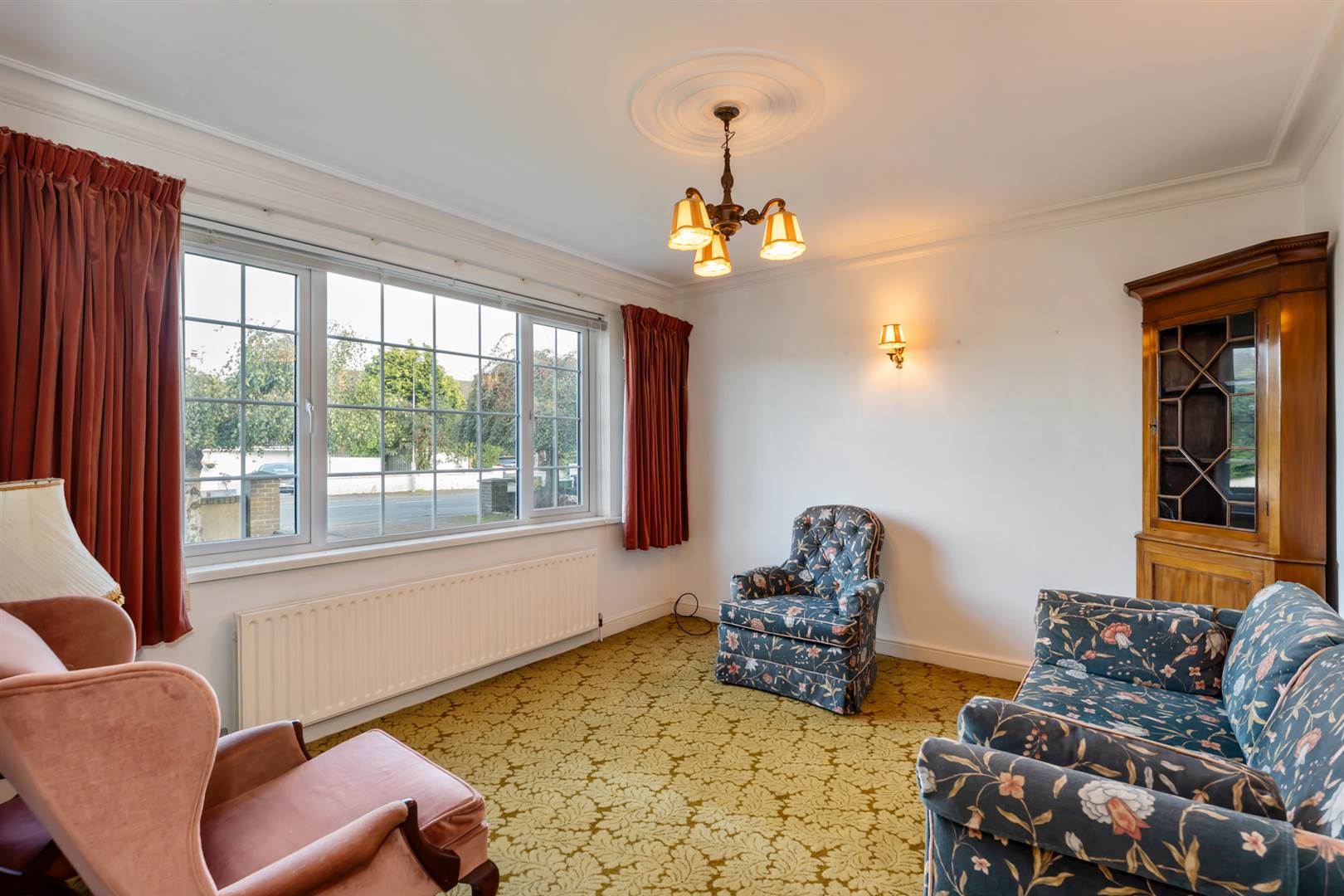 Large picture window, wall lights, cornice ceiling, ceiling rose.