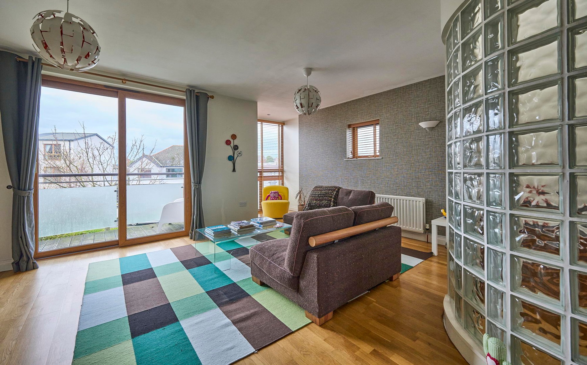 Wood flooring, sliding patio doors to garden.