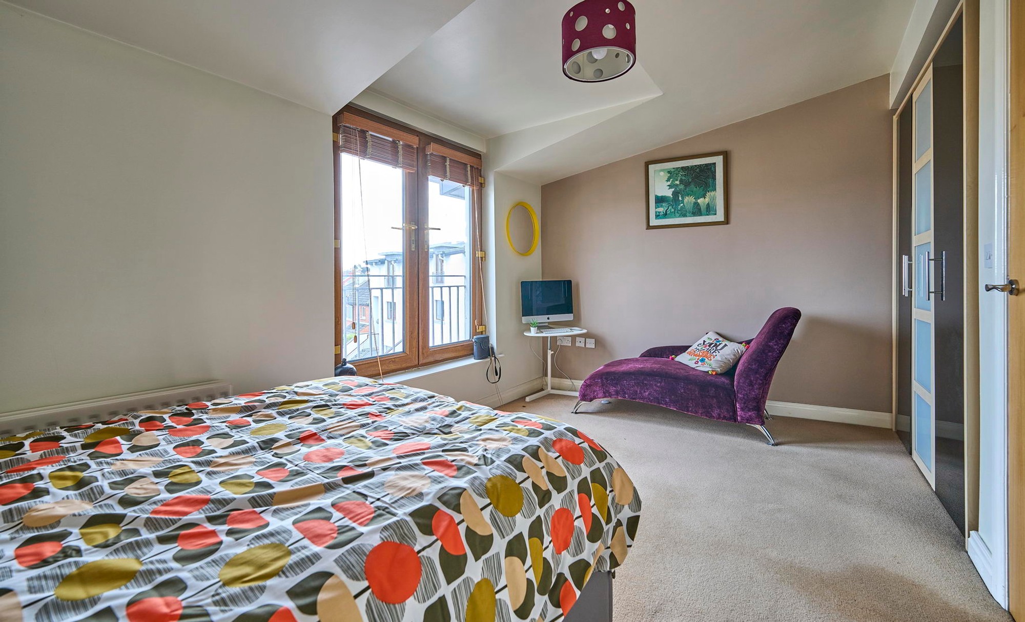 Wired for wall lights, French doors to balconette.