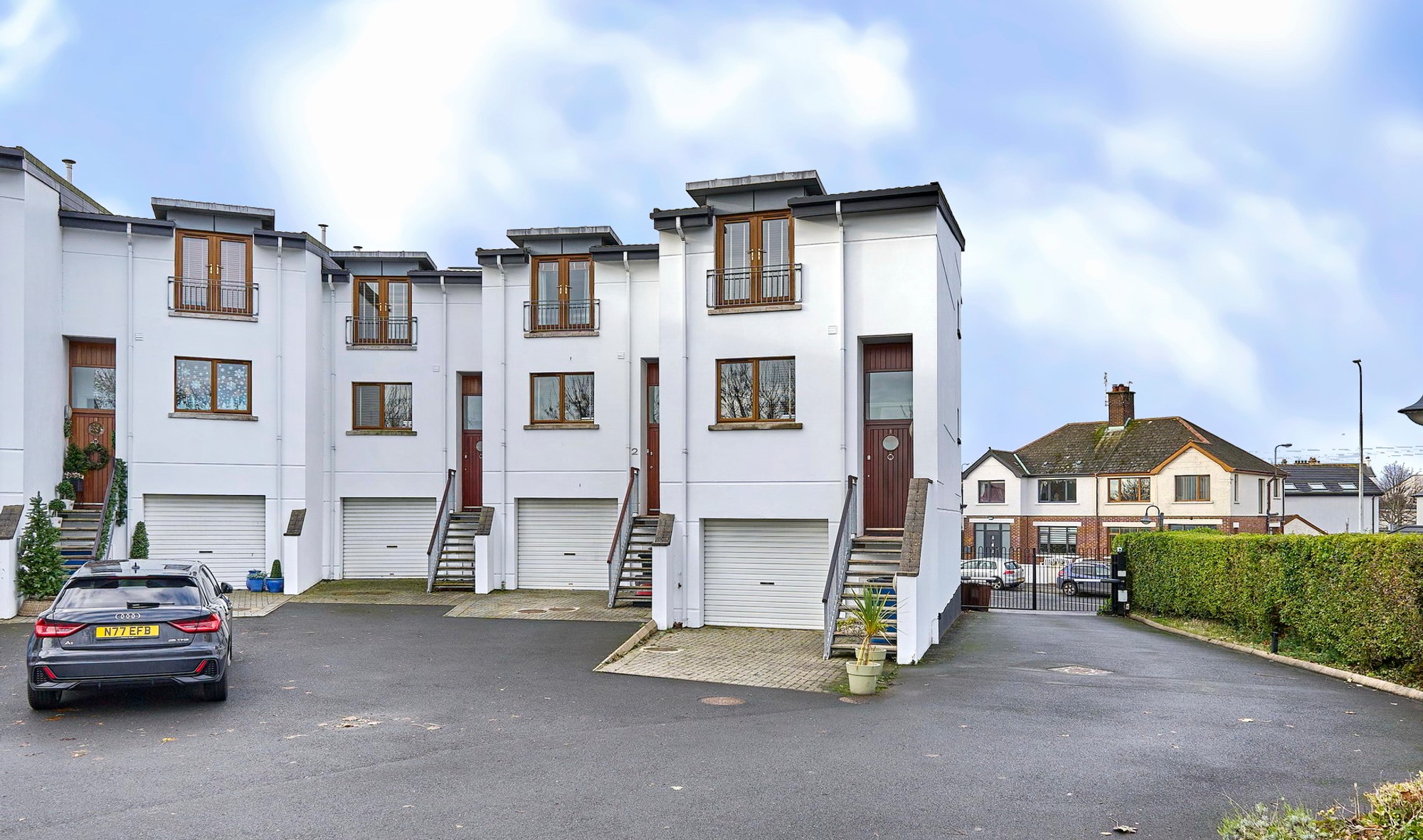 Approached via a secure gated entrance, ample parking.