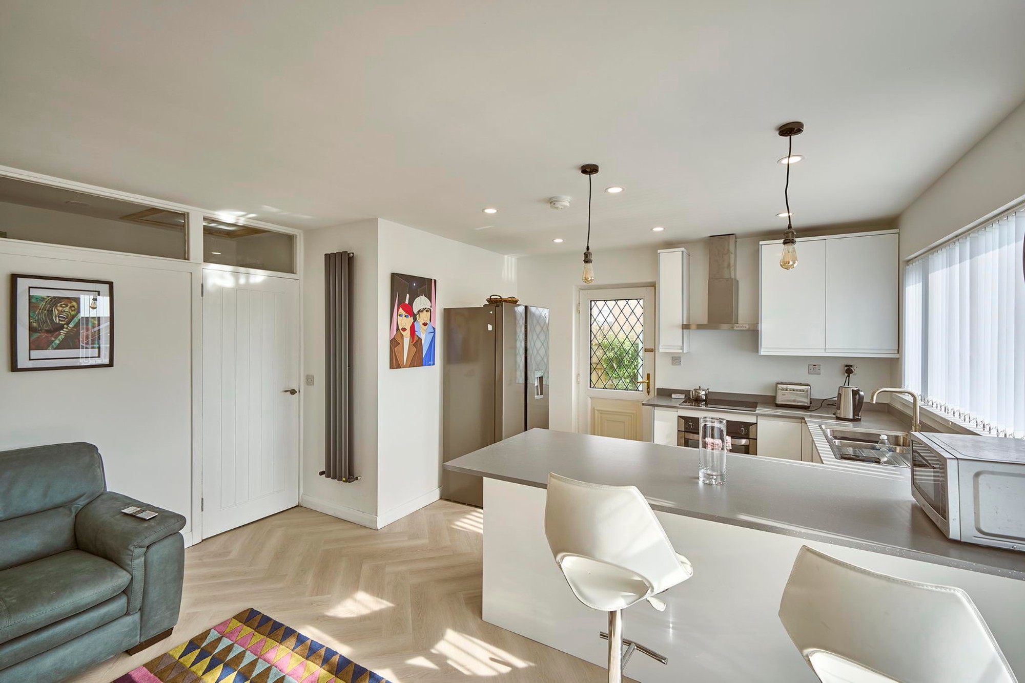 This detached bungalow is presented to a high specification having recently undergone a programme of upgrading and refurbishing, including re-wiring, new shower room, pressurised water system, new flooring throughout, new internal doors and tasteful decor - the result is a modern home ready to move into. The spacious and adaptable accommodation comprises lounge with cast iron stove, living/dining area open plan to a modern kitchen, three bedrooms and a shower room and could be further extended into the roof space (subject to necessary approvals). Outside there is a garage and gardens to front and rear.