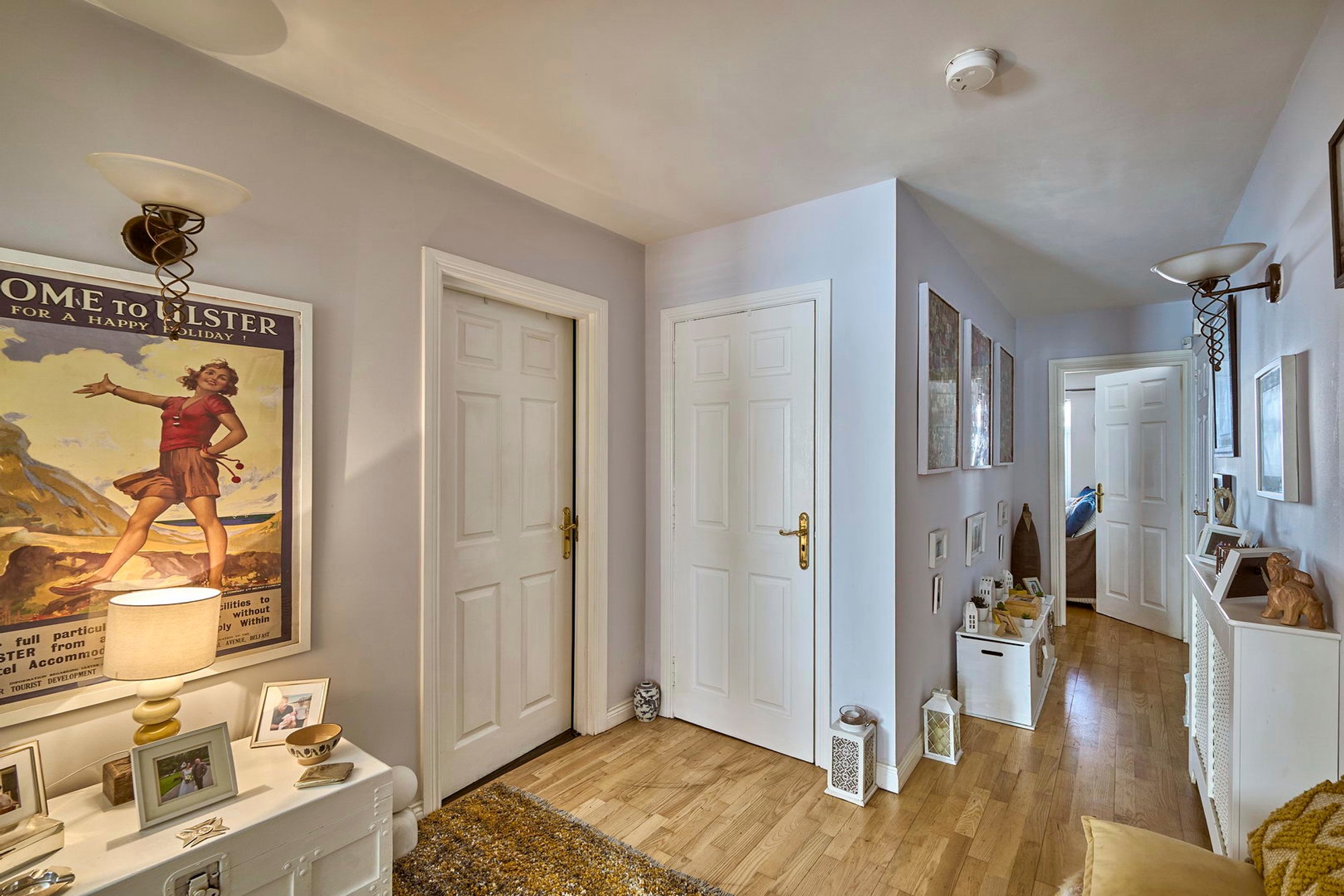 Intercom. Solid wood flooring, cloaks/storage cupboard, airing cupboard housing gas fired boiler.