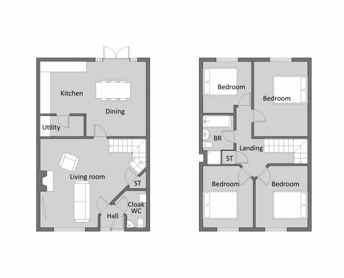 The bright accommodation comprises entrance hall with access to a ground floor cloakroom suite, lounge with gas fire, kitchen open plan to living/dining area including patio doors to the garden, utility area, four first floor bedrooms and a bathroom. Outside there is parking to the front and an enclosed easily maintained rear garden where you can enjoy the morning and evening sun.