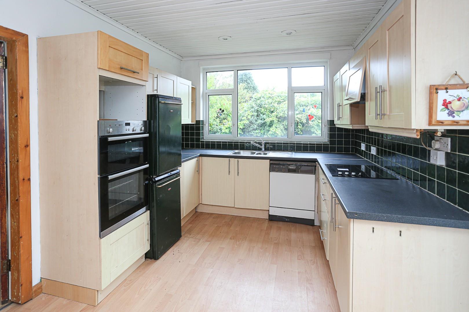 High and low level units, integrated oven, space for fridge freezer, plumbed for dishwasher, single drainer stainless steel sink unit with mixer tap, part tiled walls, four ring Neff hob, concealed extractor fan, laminate wooden flooring, door to garden, door to garage.