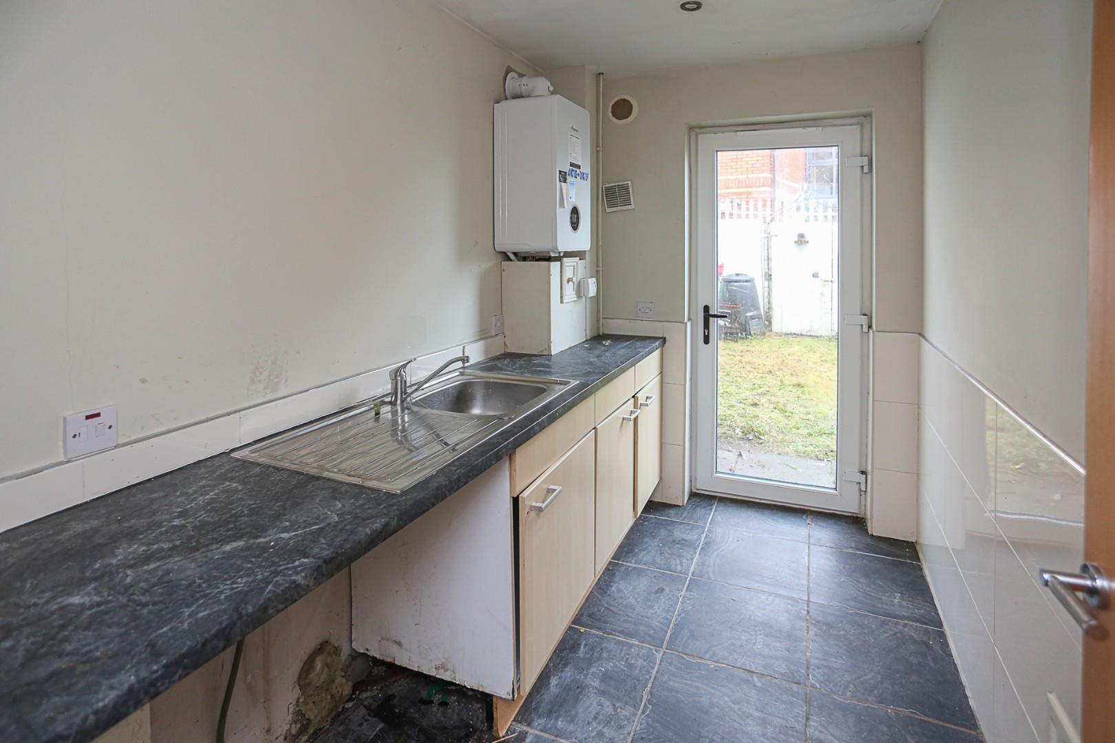 Plumbed for washing machine, single drainer stainless steel sink unit with mixer tap, gas boiler, tiled floor, Upvc door to garden.
