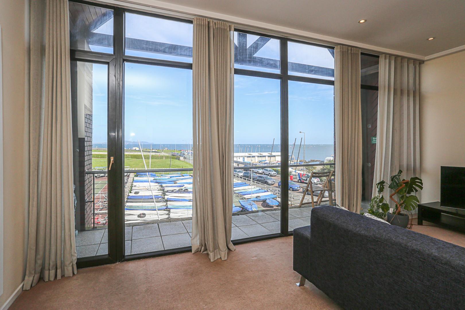 Upon entering the apartment, you are welcomed by a bright and spacious lounge-dining kitchen area, featuring impressive floor-to-ceiling windows that frame the spectacular sea views.