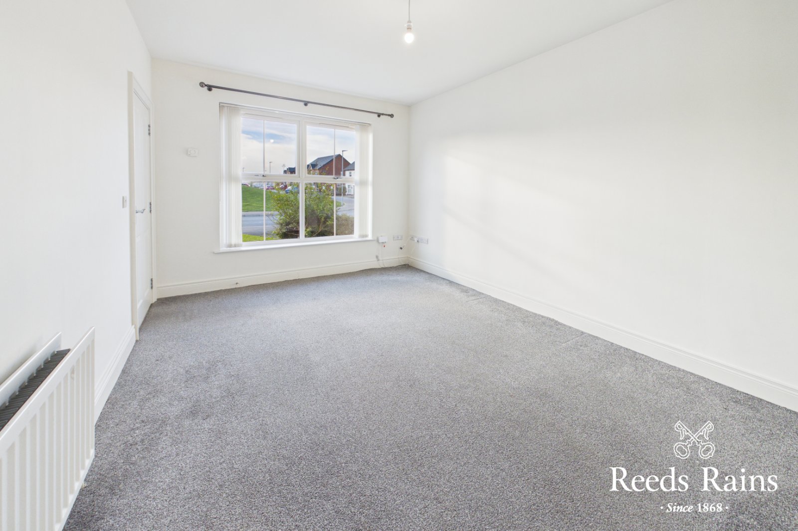 Spacious lounge with grey carpet