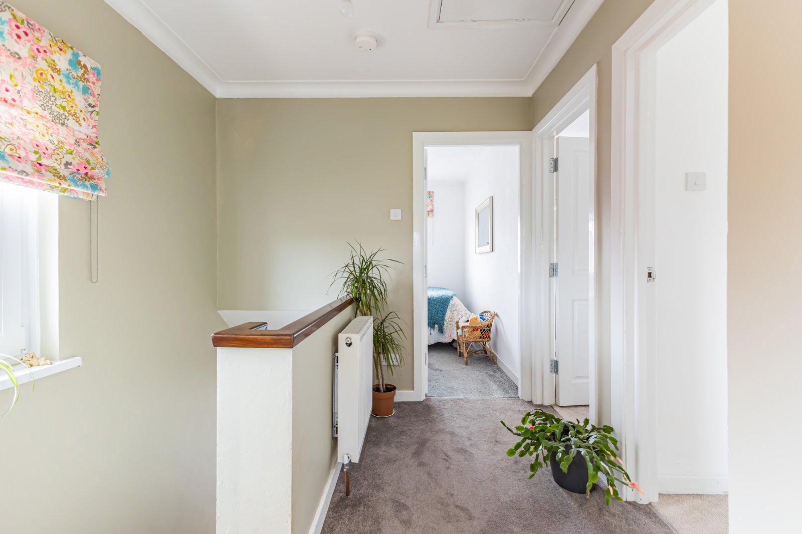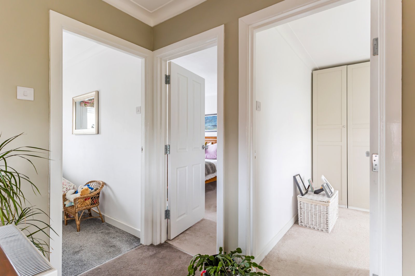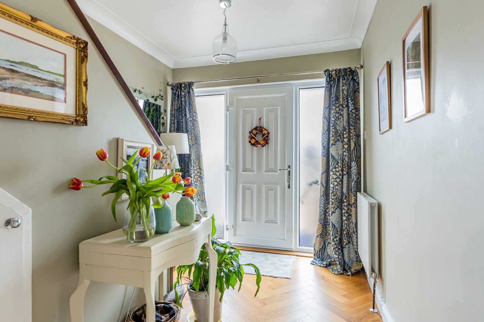 Composite double glazed front door, Herringbone engineered oak floor, cornice ceiling, under stairs storage.