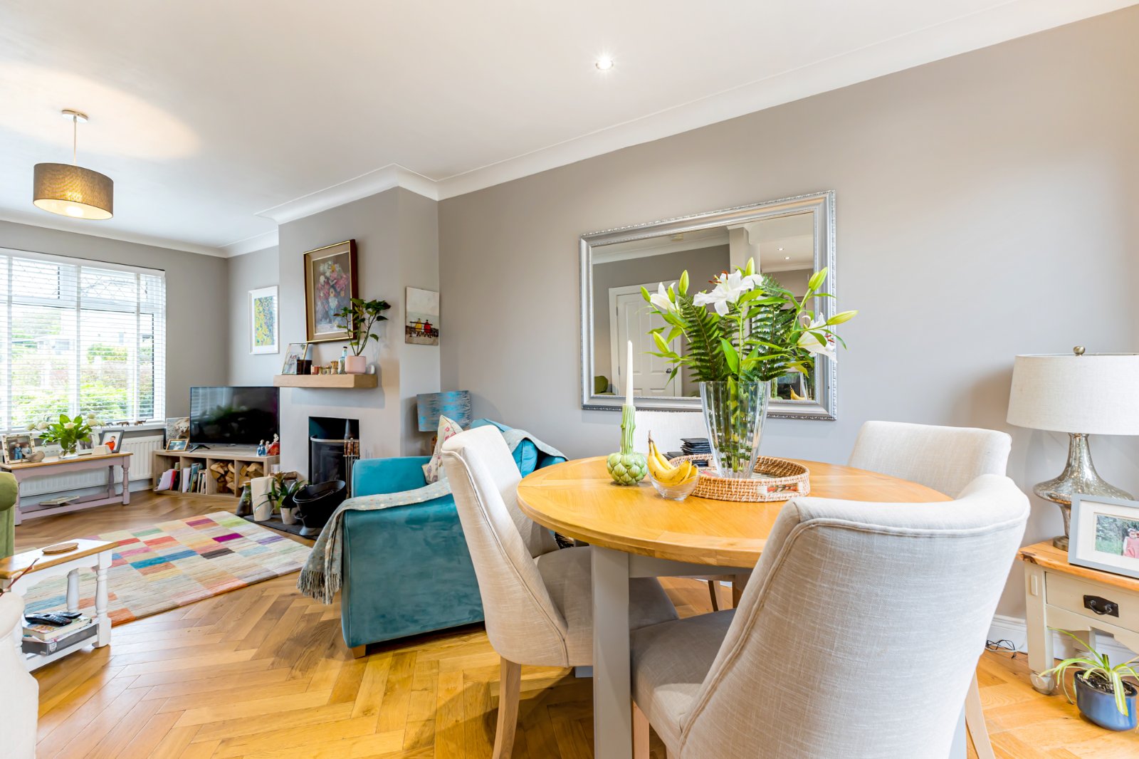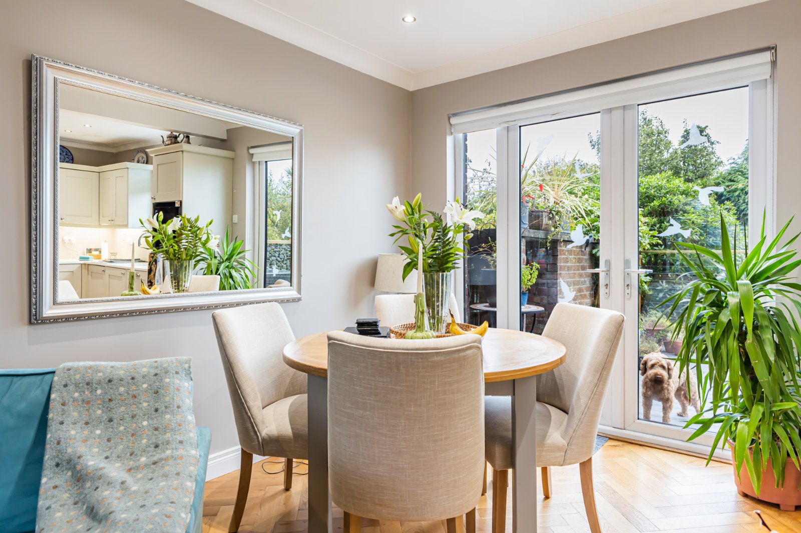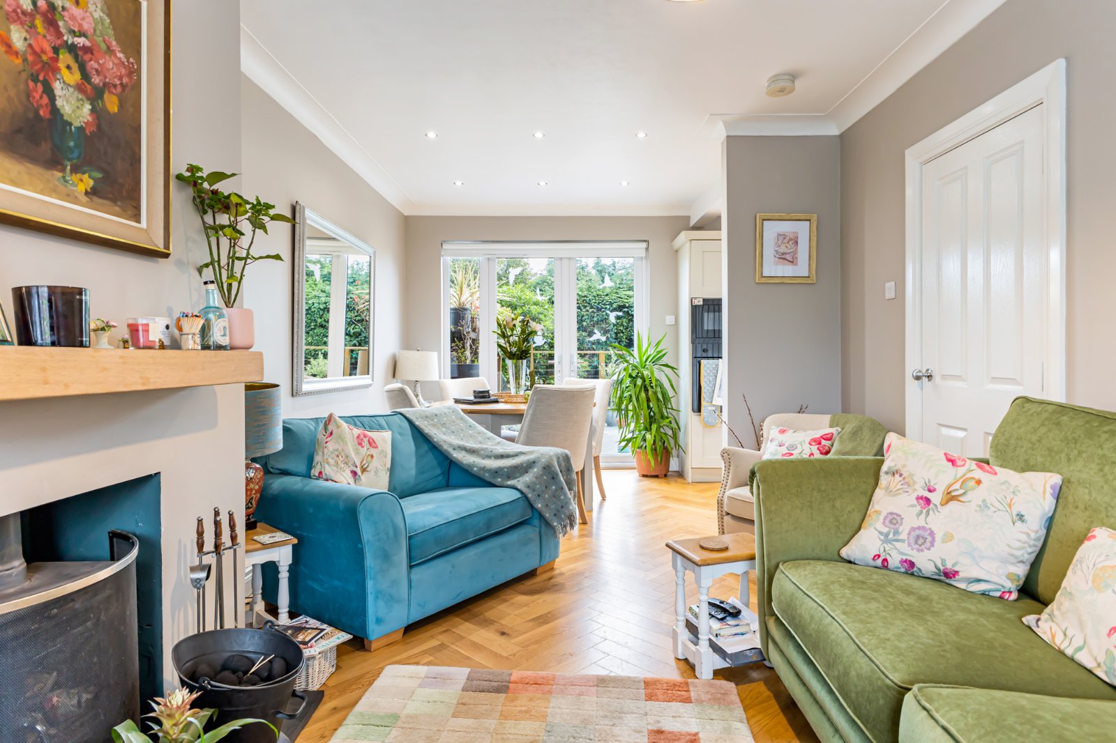 Herringbone engineered oak floor, uPVC double glazed French doors to rear garden. Open plan to Kitchen.