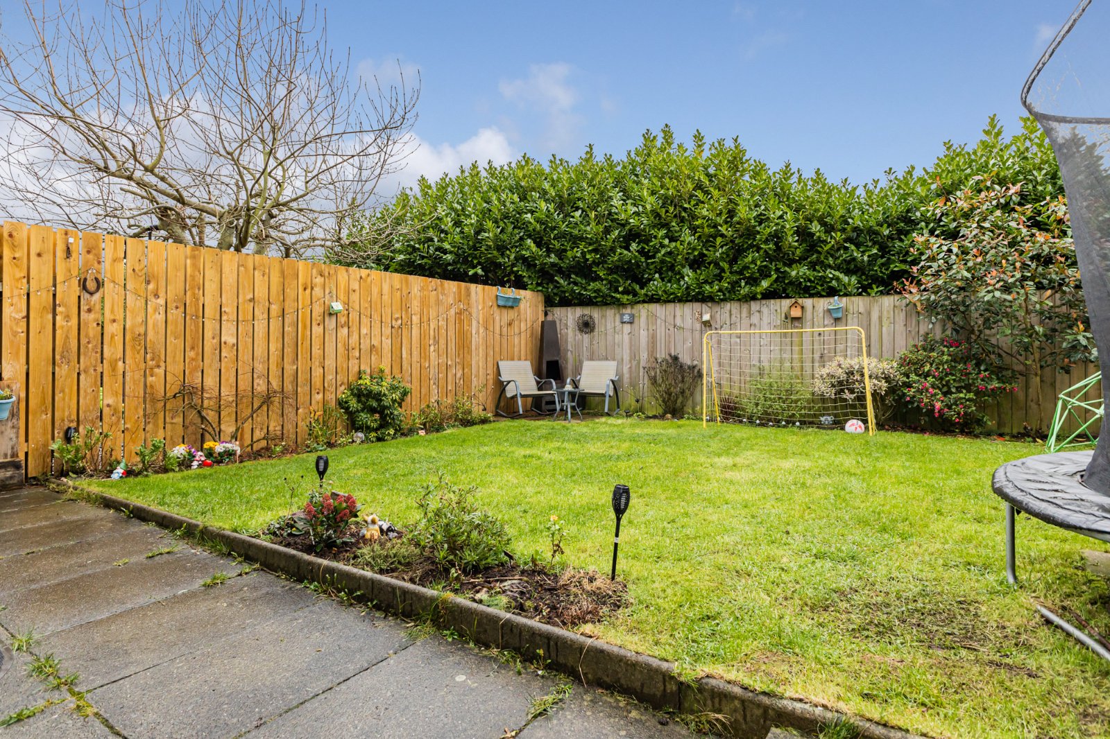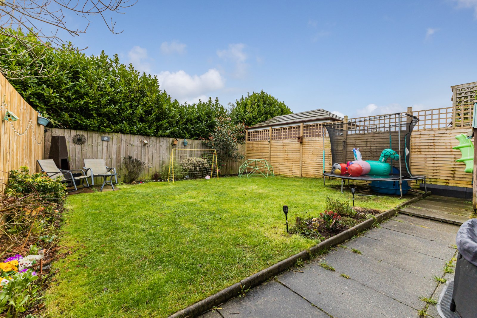 Enclosed rear garden in lawns, paved patio area, garden shed, outside tap and light.