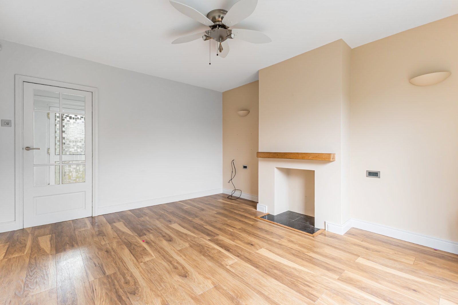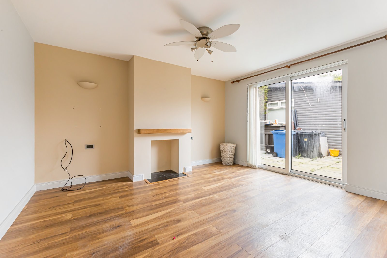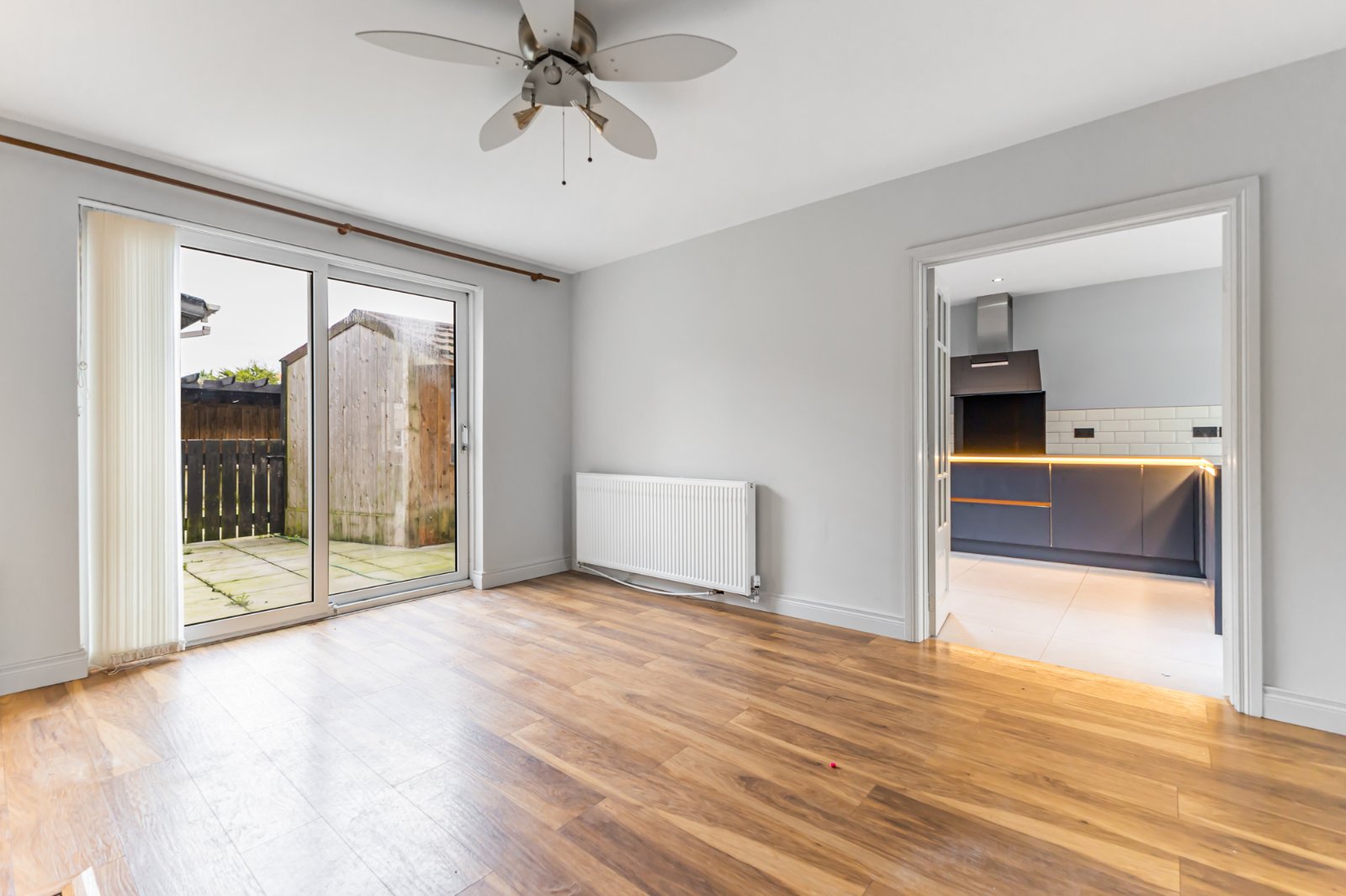 Laminate wooden flooring, UPVC double glazed sliding patio doors to gardens