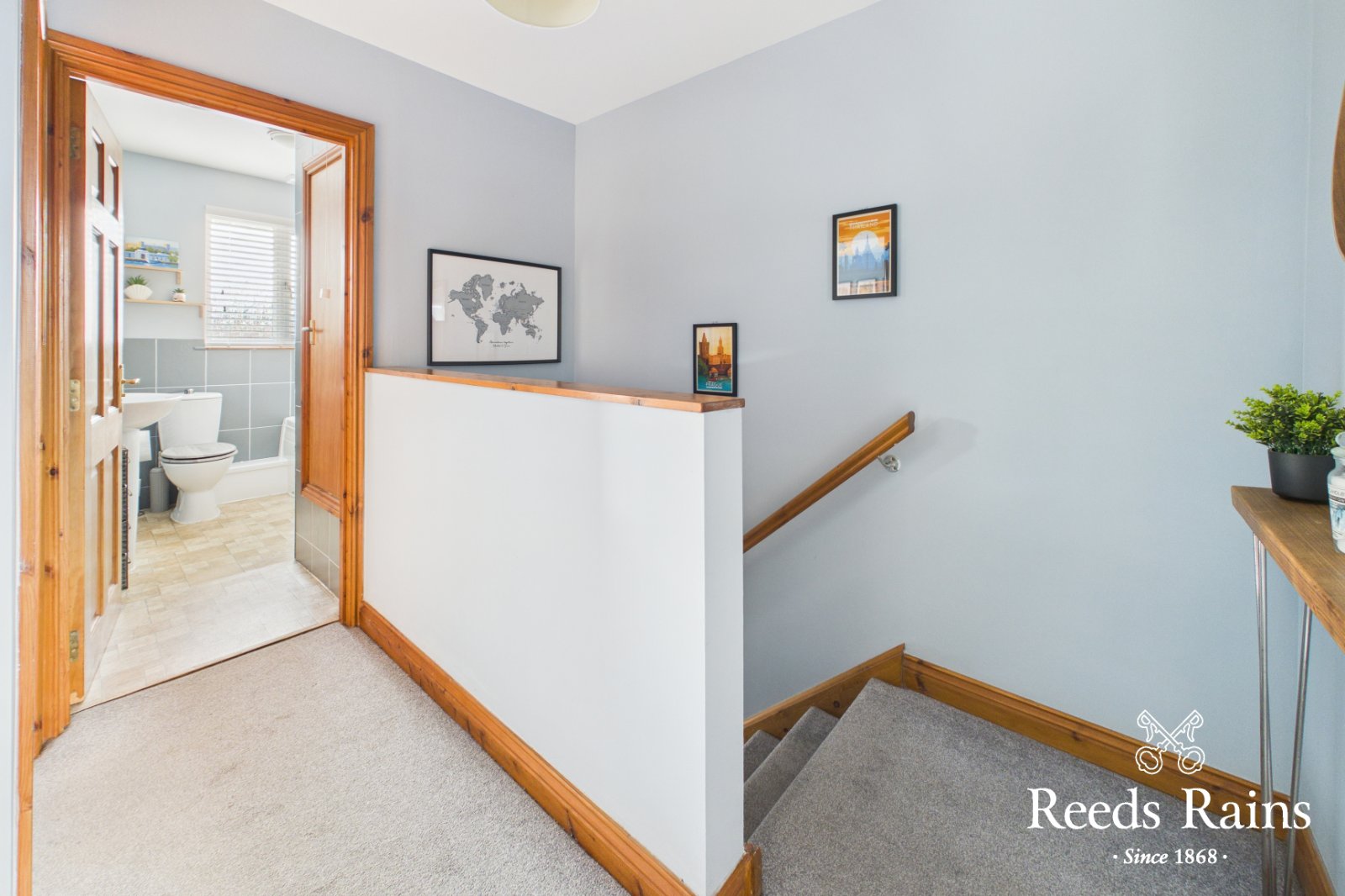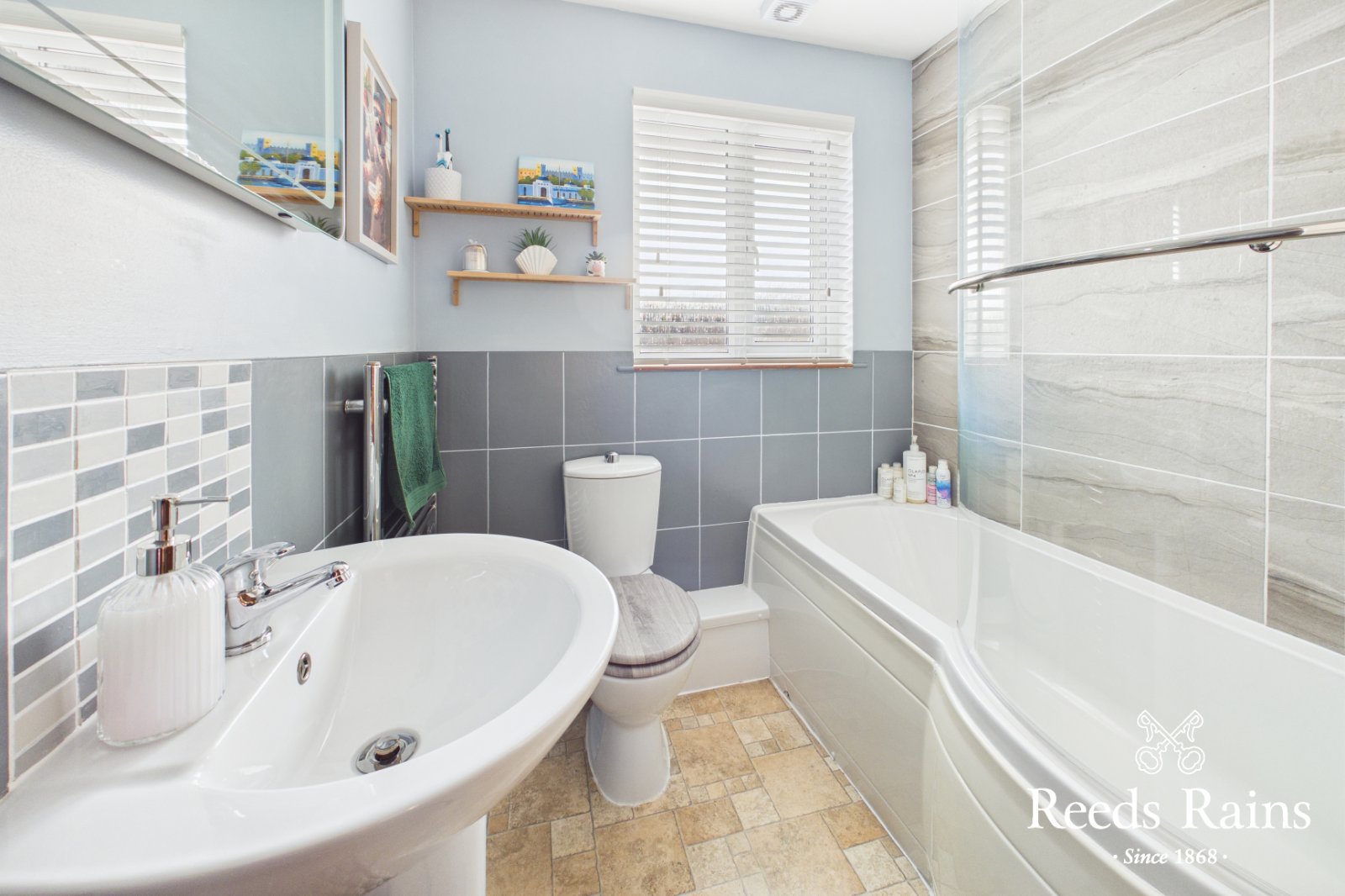 Internally, the accommodation comprises a bright lounge, a contemporary kitchen open plan to a dining area, and a practical ground floor cloakroom with WC. On the first floor there are three well-proportioned bedrooms along with a modern bathroom fitted with a white suite. The home benefits from gas-fired central heating and double glazing, ensuring efficiency and year-round comfort.