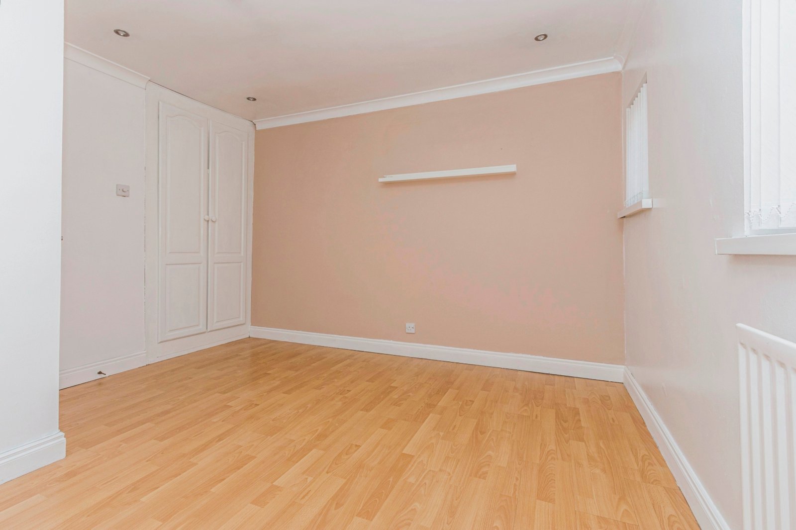 Double built in robe, recessed spotlights, laminate wooden floor.
