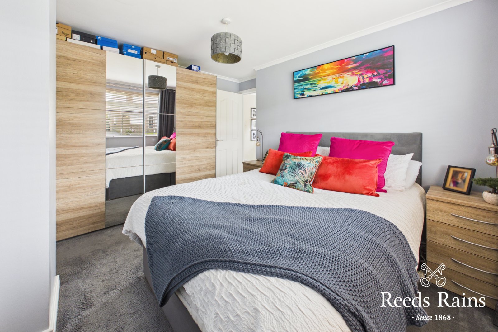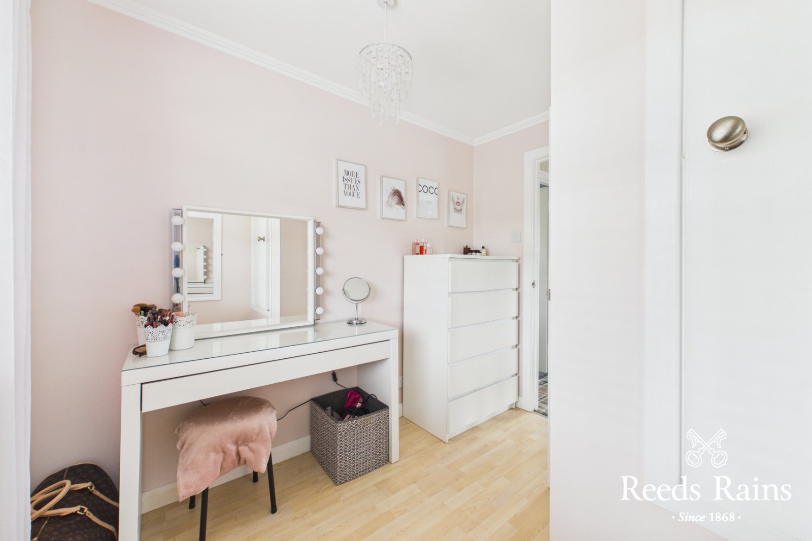 Laminate wooden floor, built in cupboard.