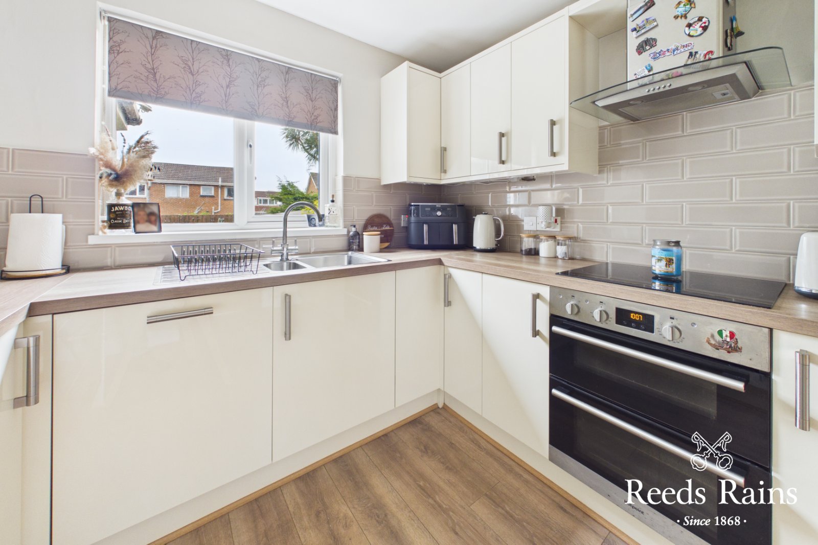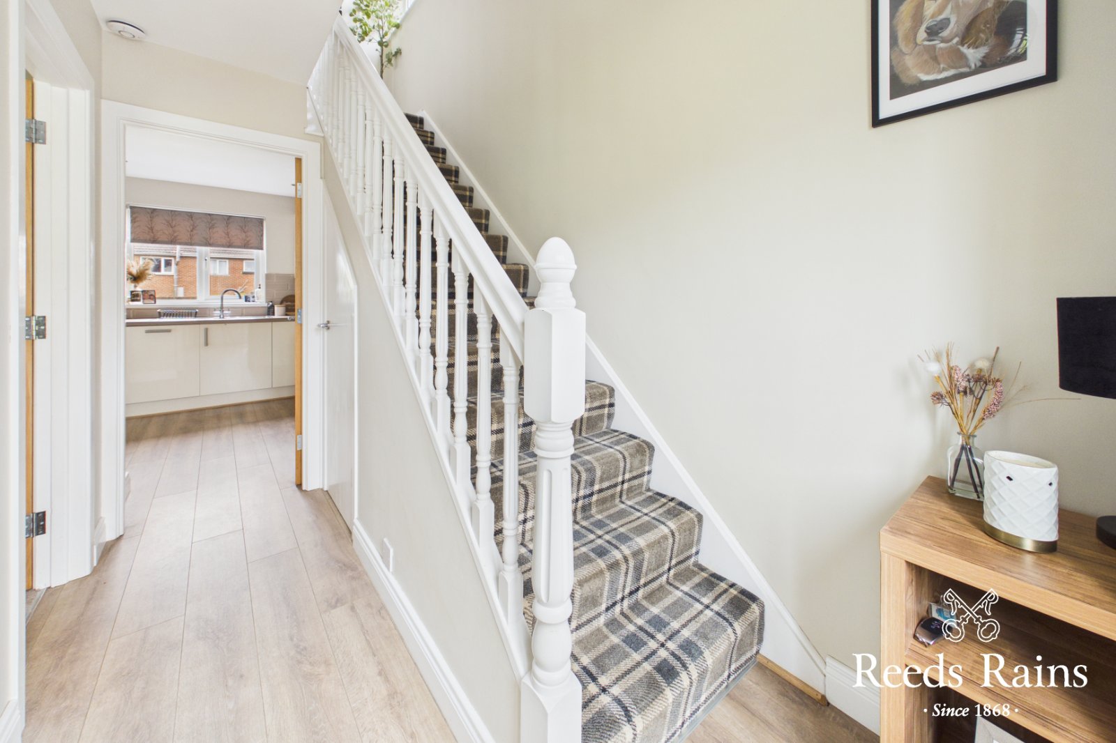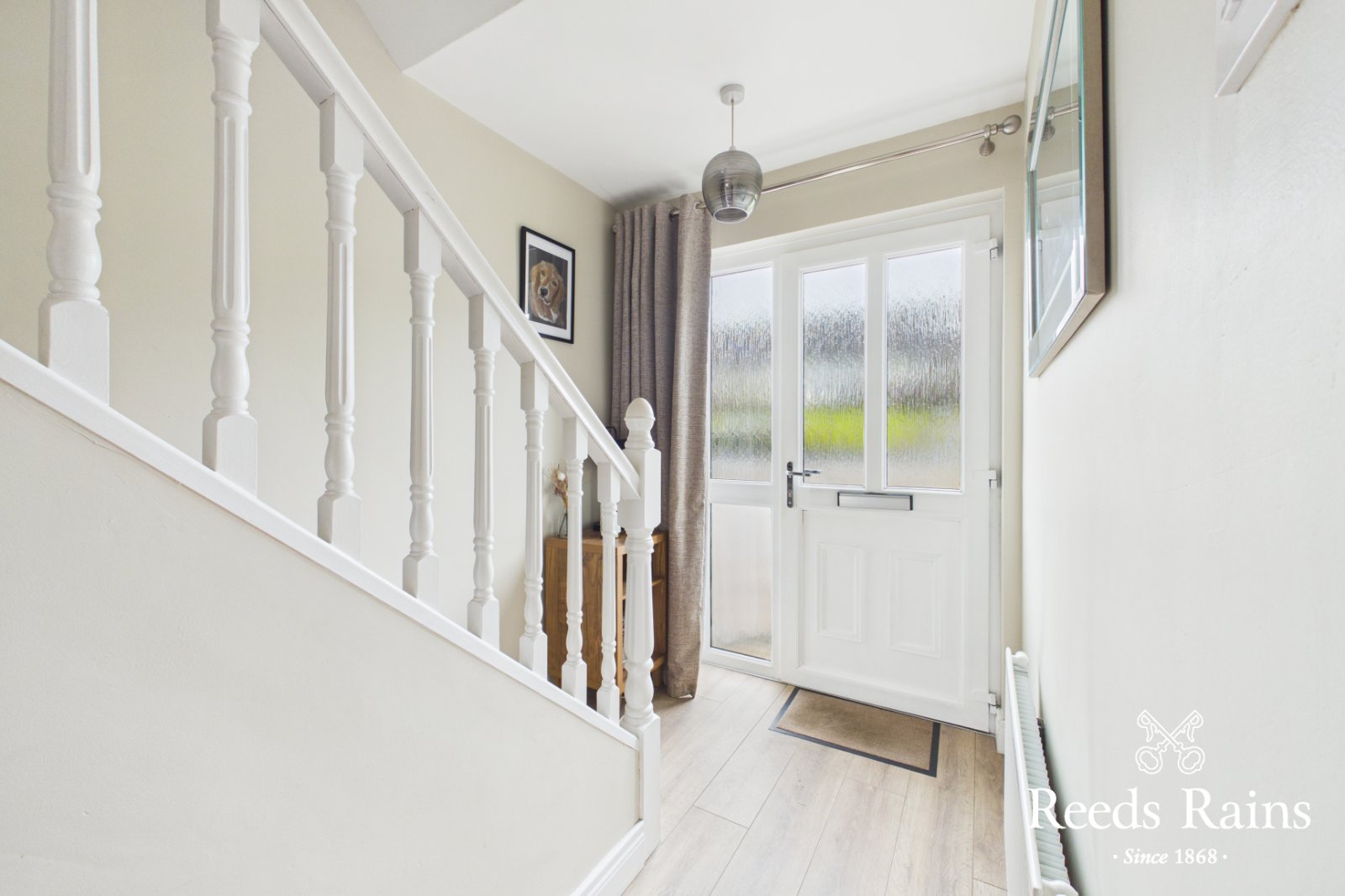 Composite double glazed front door, laminate wooden floor, under stairs storage.