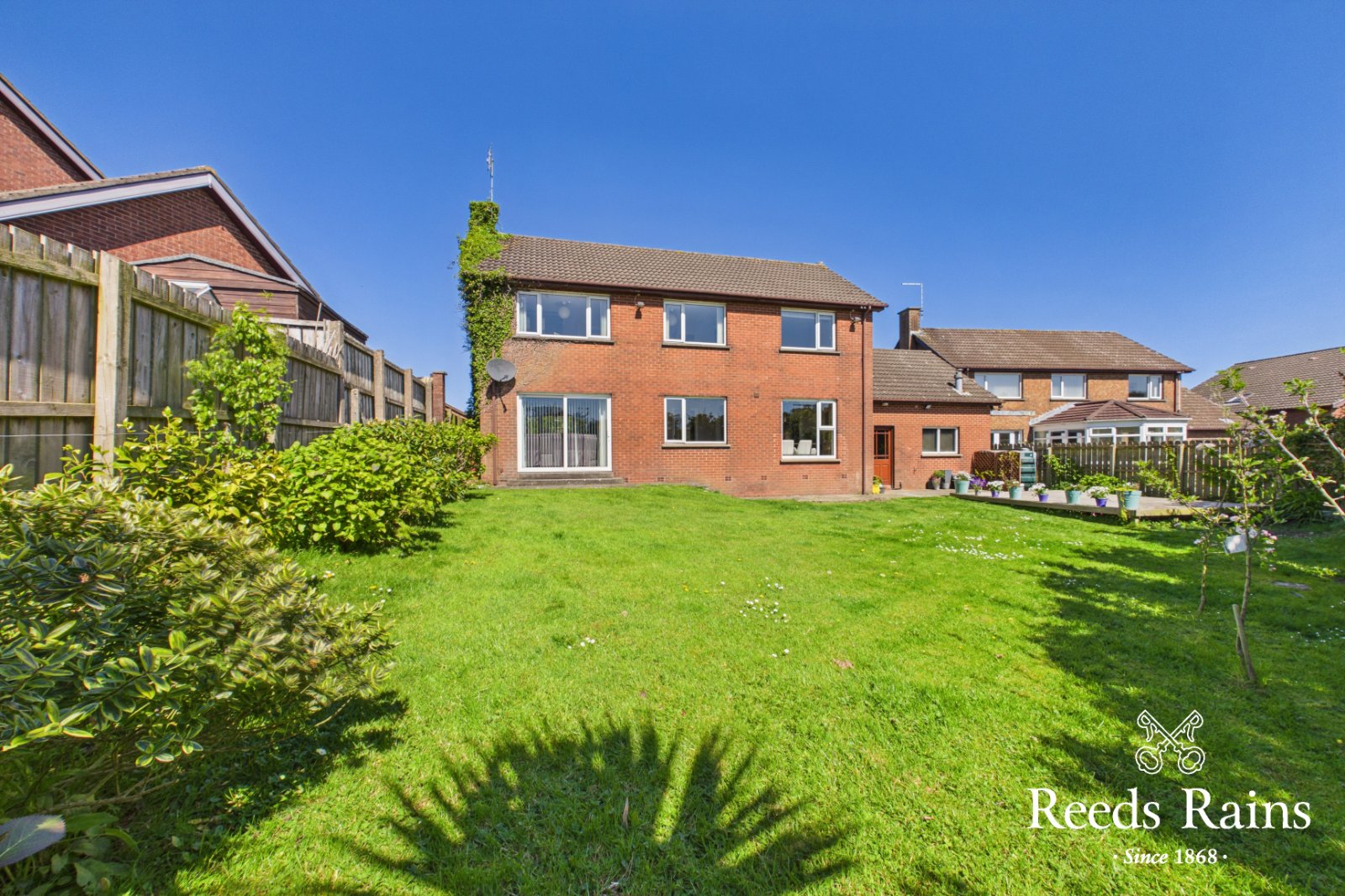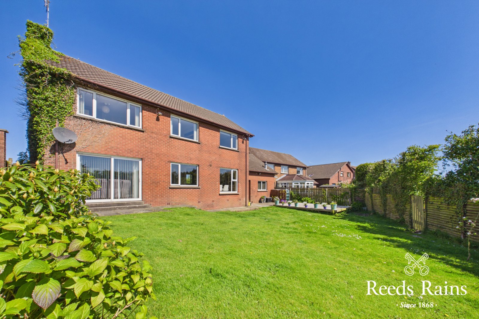 Externally, the property is complemented by mature gardens to the front and a fully enclosed, private rear garden laid in lawns, patio, and decking-perfect for relaxing or entertaining. An attached garage, accessed directly from the kitchen, adds further convenience.
