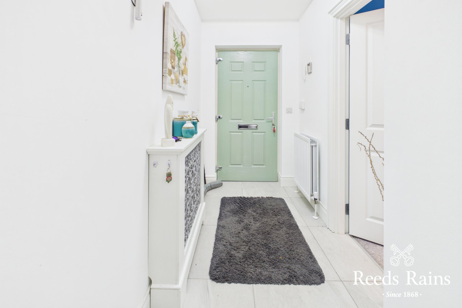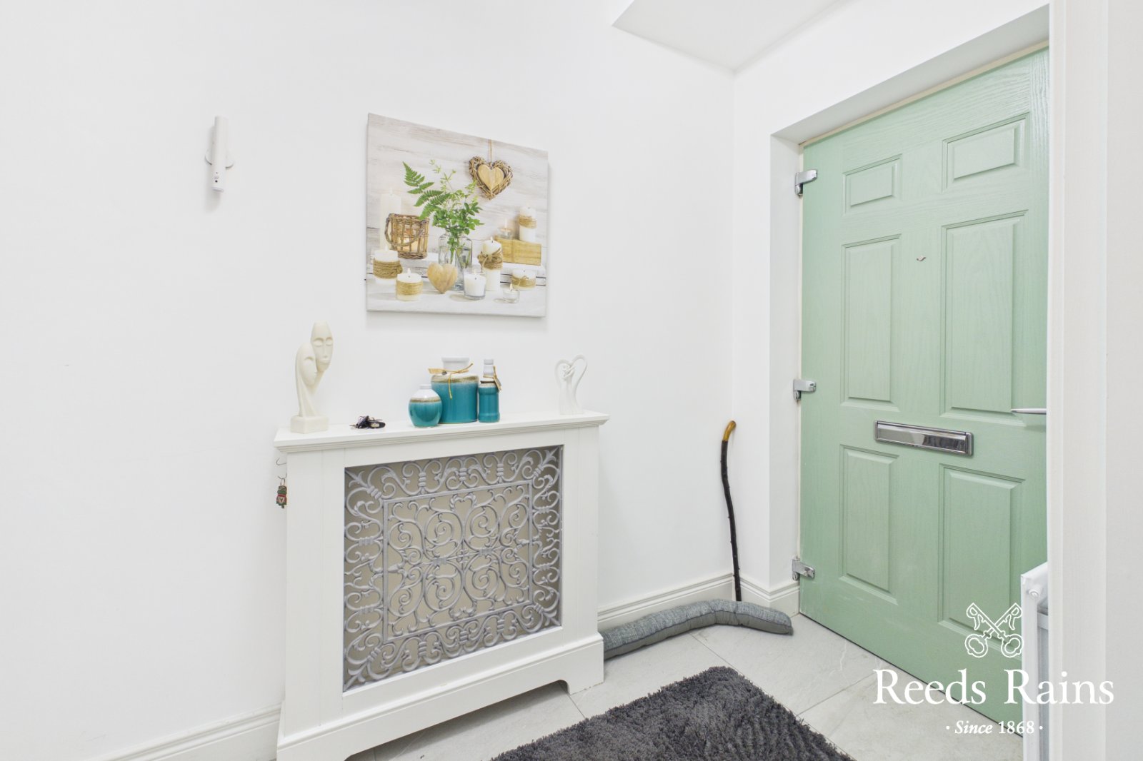 Composite front door, ceramic tiled floor.