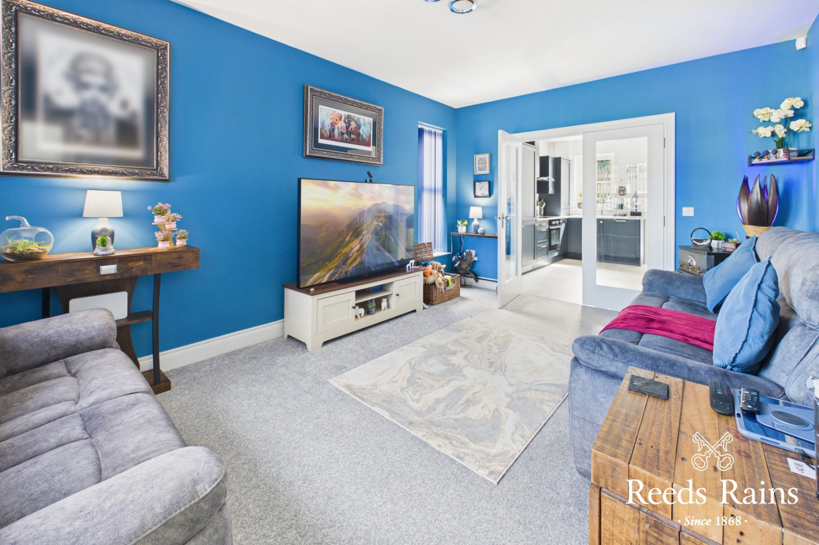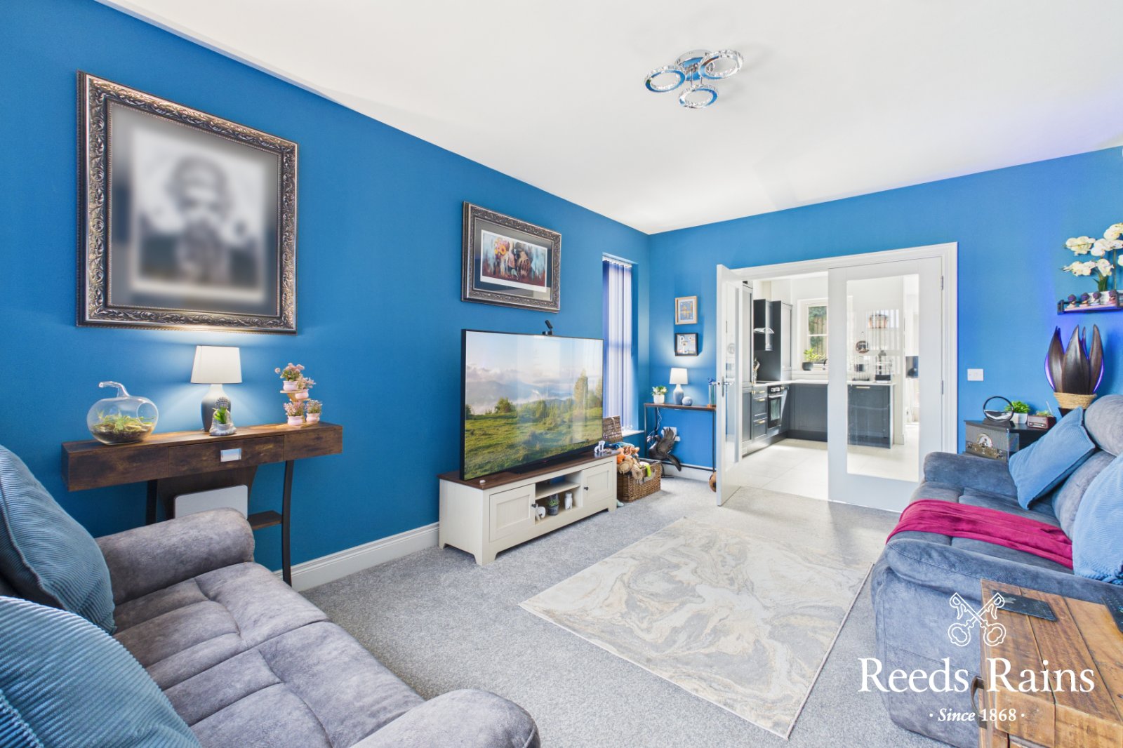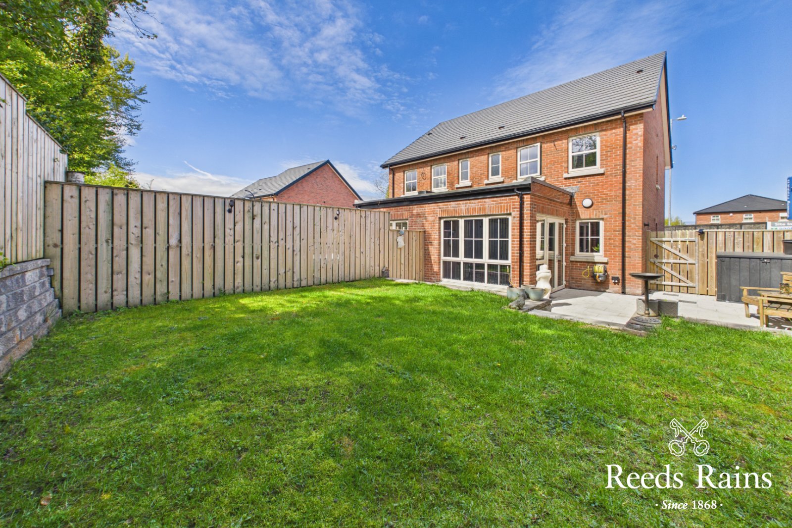 Internally, the property is presented to an excellent standard throughout, with modern fittings and a clean, cohesive finish that will appeal to a wide range of purchasers. The ground floor comprises a welcoming reception hall, a well-proportioned lounge with glazed double doors leading through to a stylish kitchen/diner. The kitchen is fitted with a range of integrated appliances and finished with quartz worktops, flowing seamlessly into the sunroom-creating an ideal open-plan living and entertaining space. From here, uPVC double-glazed French doors provide direct access to the private, south-facing rear garden. A ground floor cloakroom with WC and utility area completes the accommodation at this level.