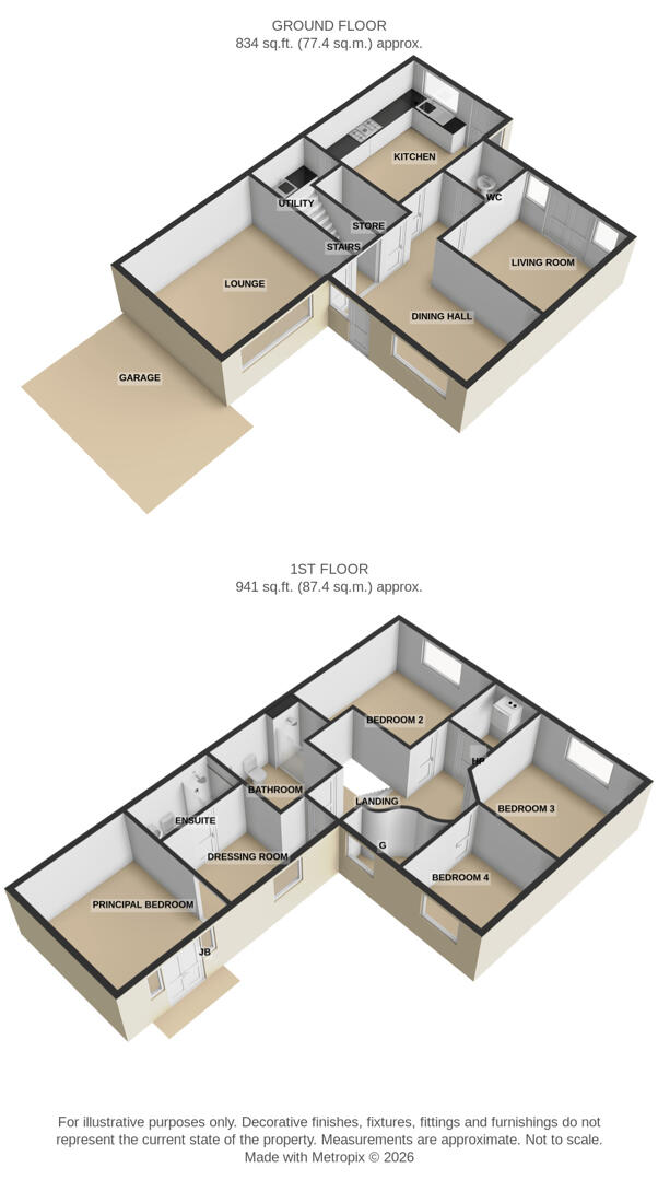 The first floor continues to impress, with a bright landing providing access to four well-proportioned bedrooms. The principal bedroom enjoys the benefit of its own en suite facilities and dressing room, while the remaining bedrooms are served by a spacious family bathroom. The overall arrangement offers excellent flexibility for growing families, home working or guest accommodation.