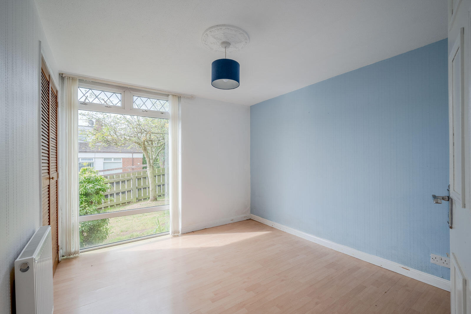 With outlook to front, laminate wood effect floor.