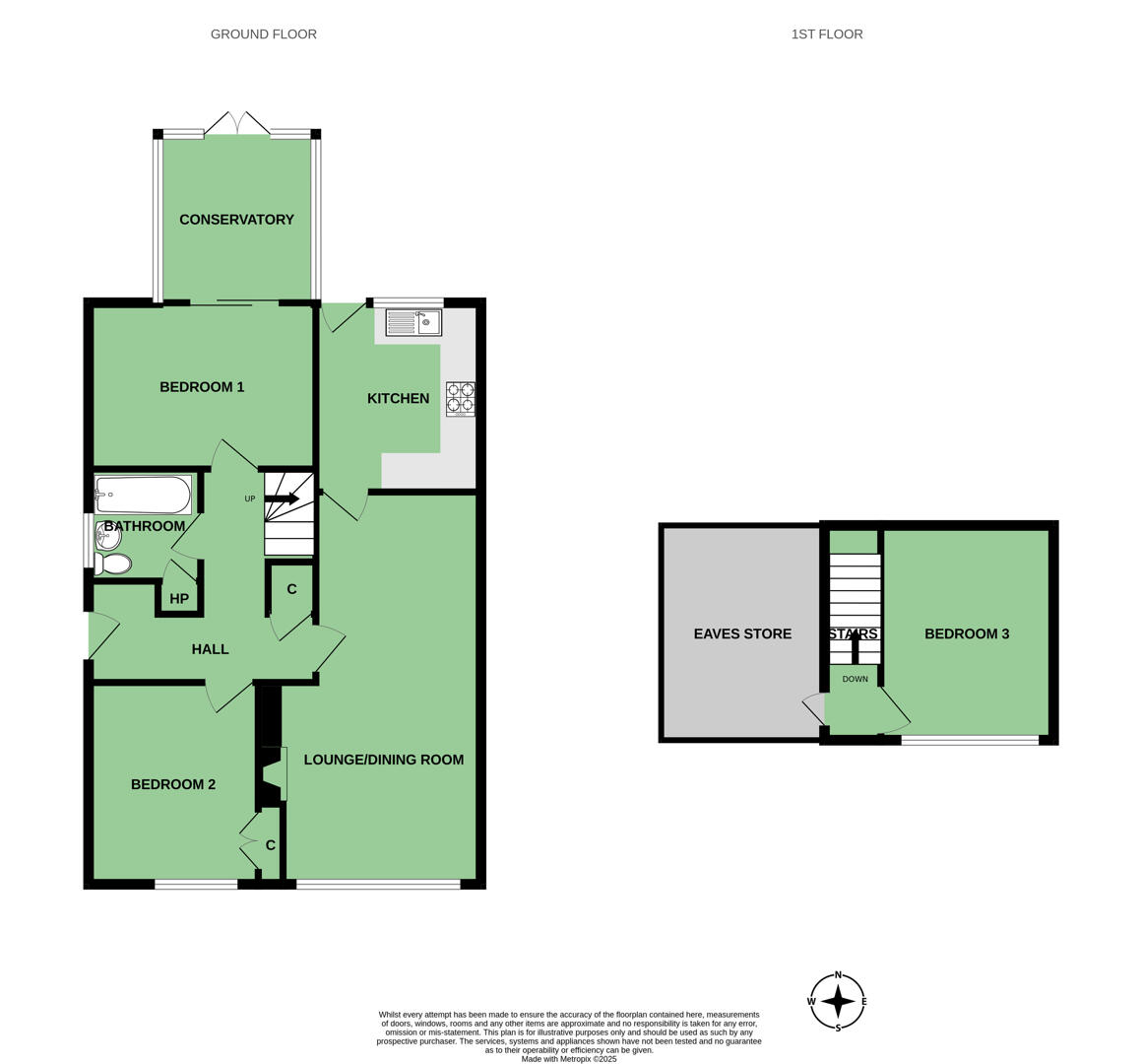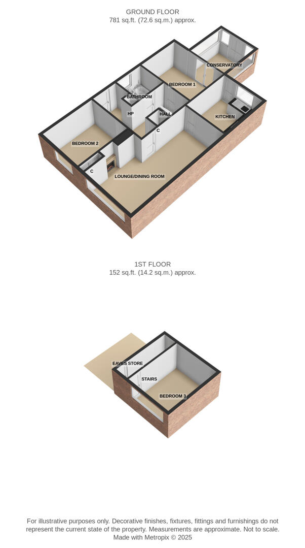 Two bedrooms located on the ground floor with lounge, kitchen, conservatory, and family bathroom.