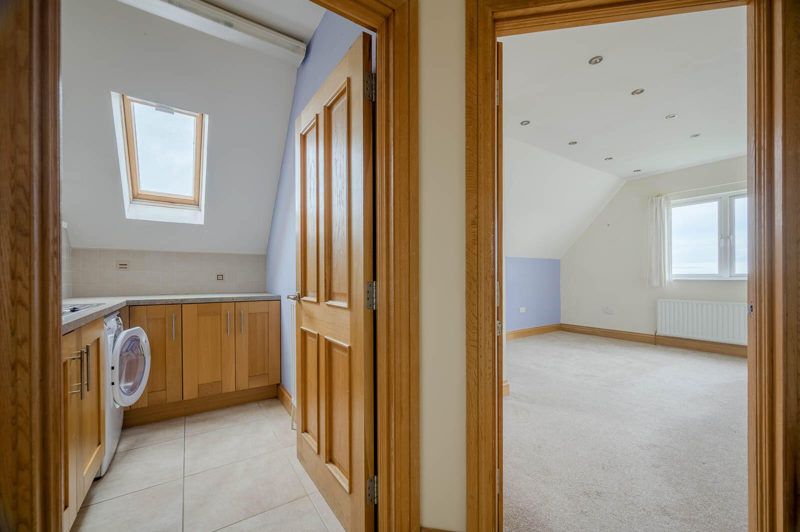 Semi vaulted ceiling, recessed spotlight, breathtaking views across Bangor, Bangor Marina and Bangor Harbour to Bangor and Ballyholme Bay across the Irish Sea to Scotland beyond, Velux window, partitioned for study area.