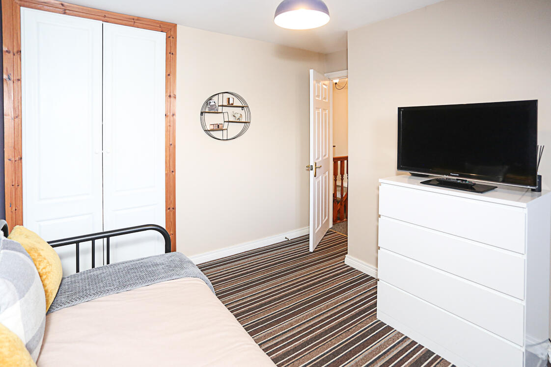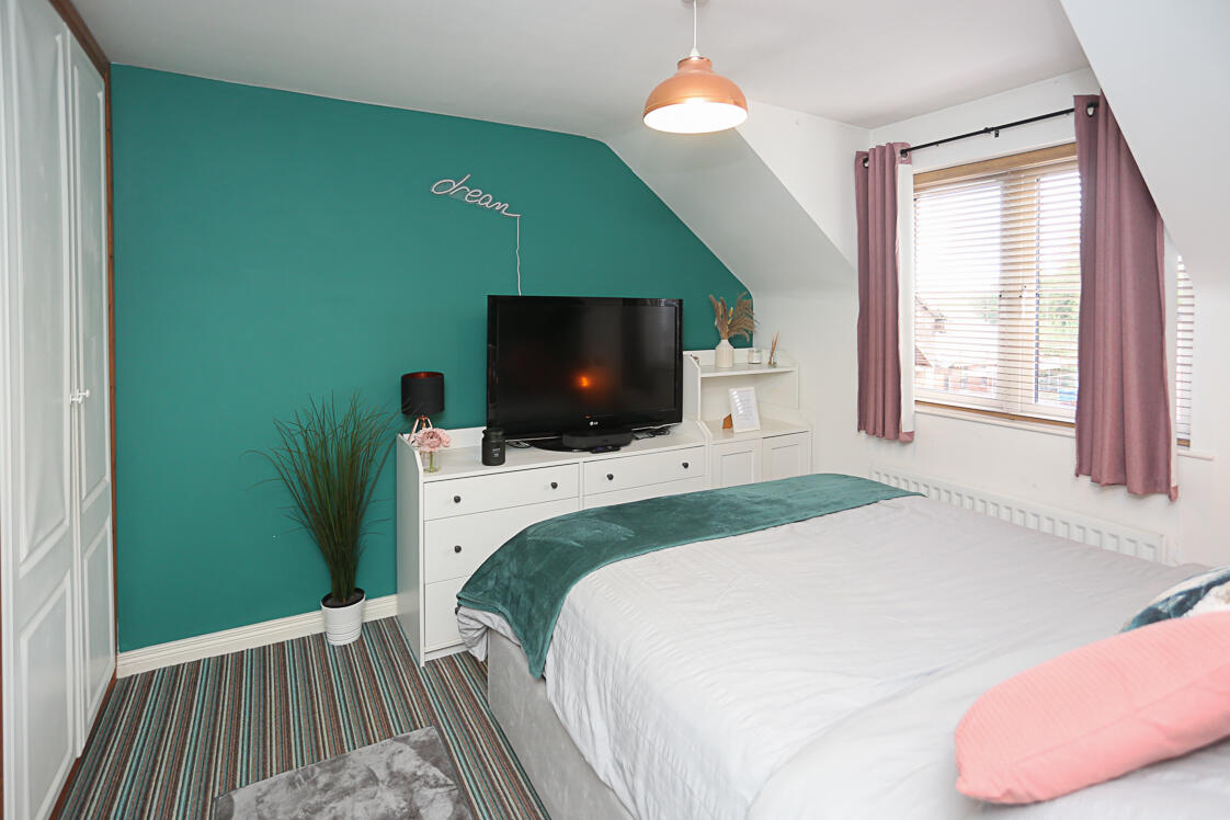Outlook to rear, built-in robes.