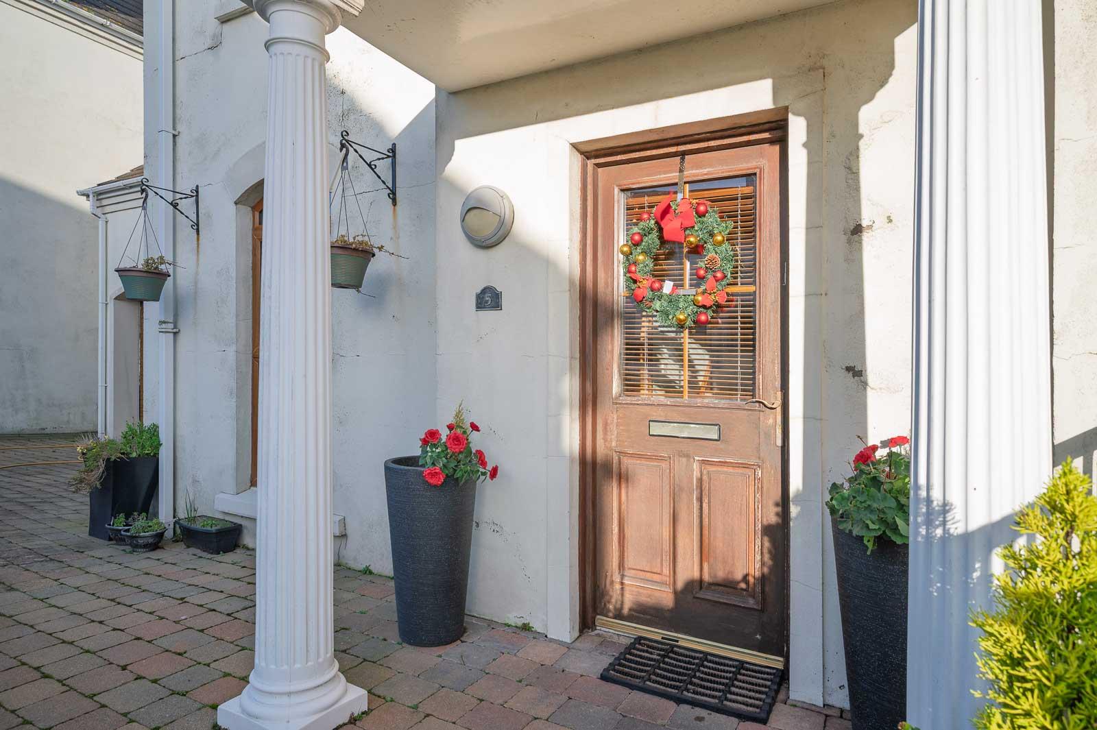Front door with double glazed inset to reception/dining hall.