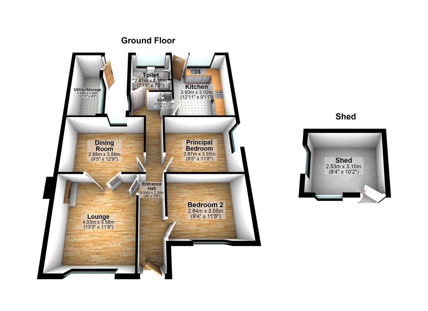 Garden Store 12'11 X 4'9 (3.94m X 1.45m)