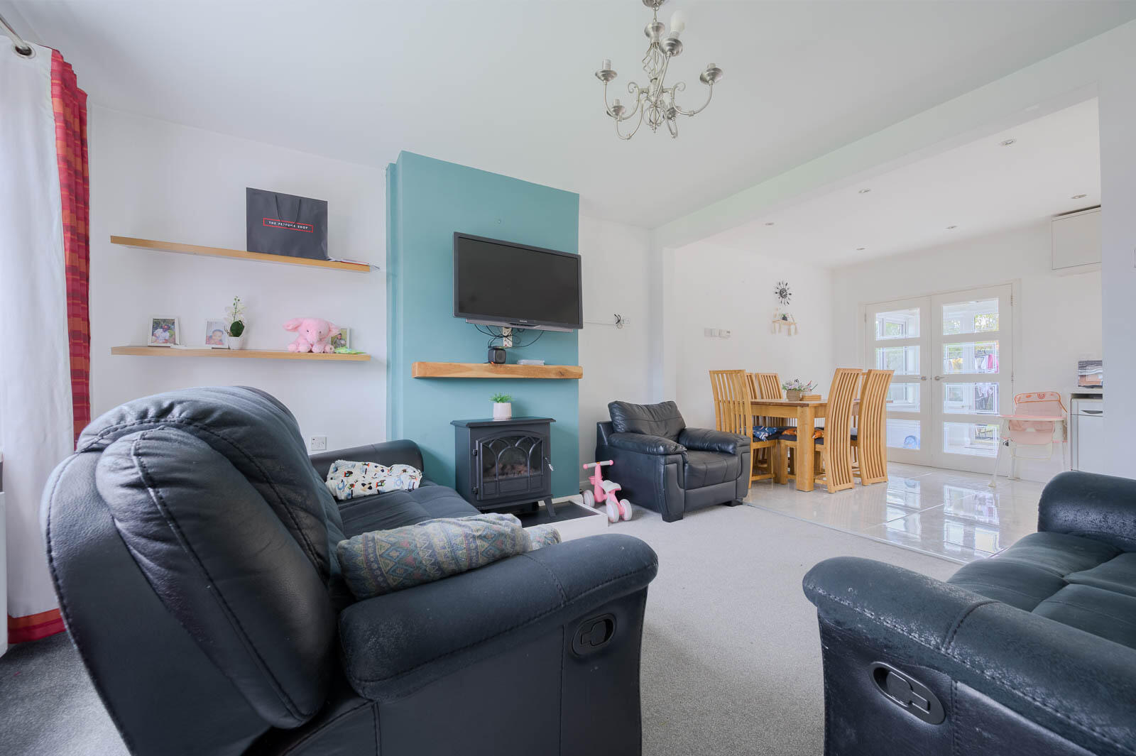 The accommodation includes a bright lounge, kitchen, and dining space on the ground floor, with three well-proportioned bedrooms and a family bathroom to the first floor. While the home offers comfortable living as is, its layout and outdoor space open opportunities for reconfiguration or expansion to suit modern lifestyles.