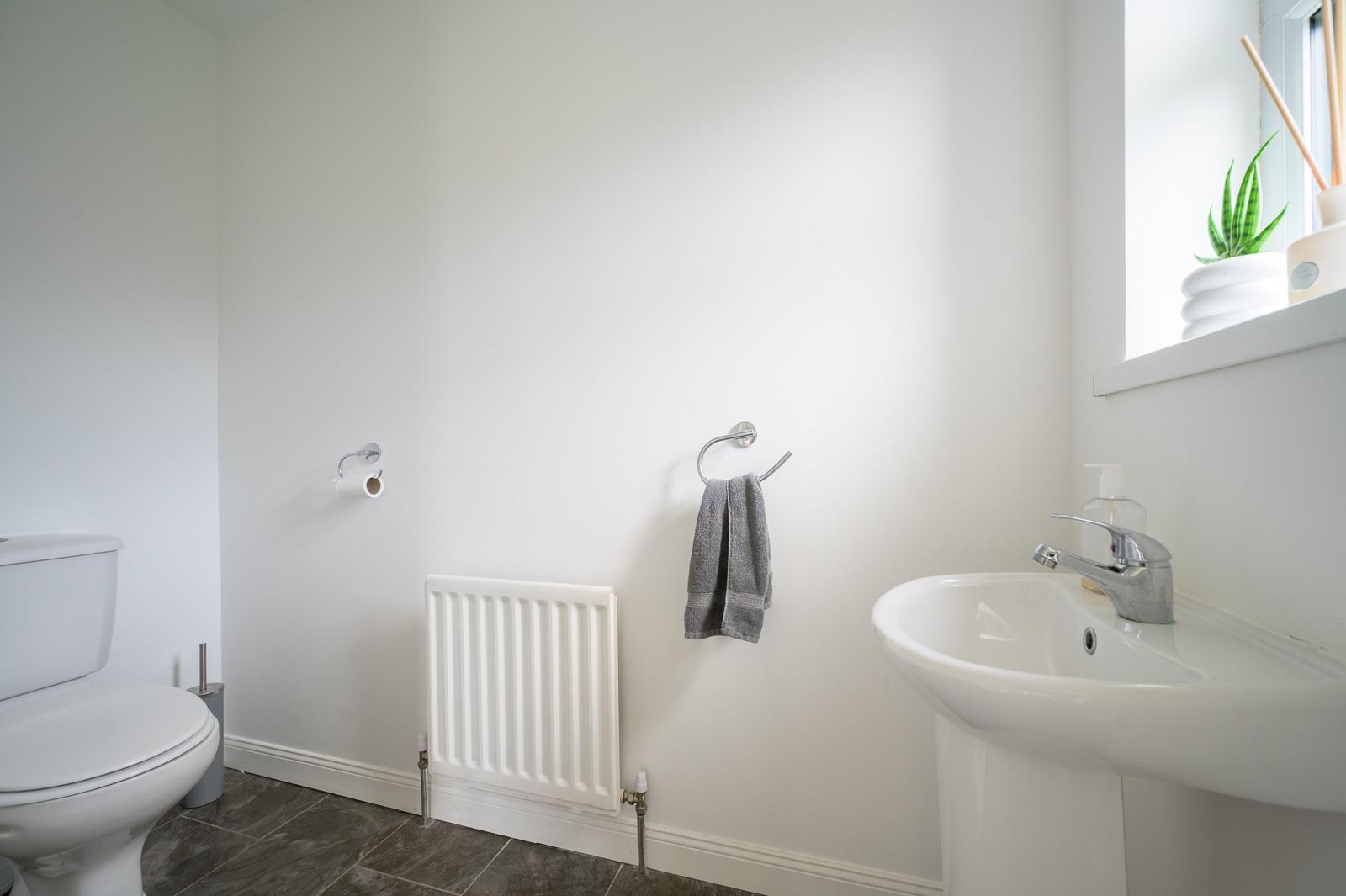 Upstairs, four well-proportioned bedrooms include a principal bedroom with a sleek ensuite shower room. The family bathroom is fitted with a contemporary four-piece suite.
