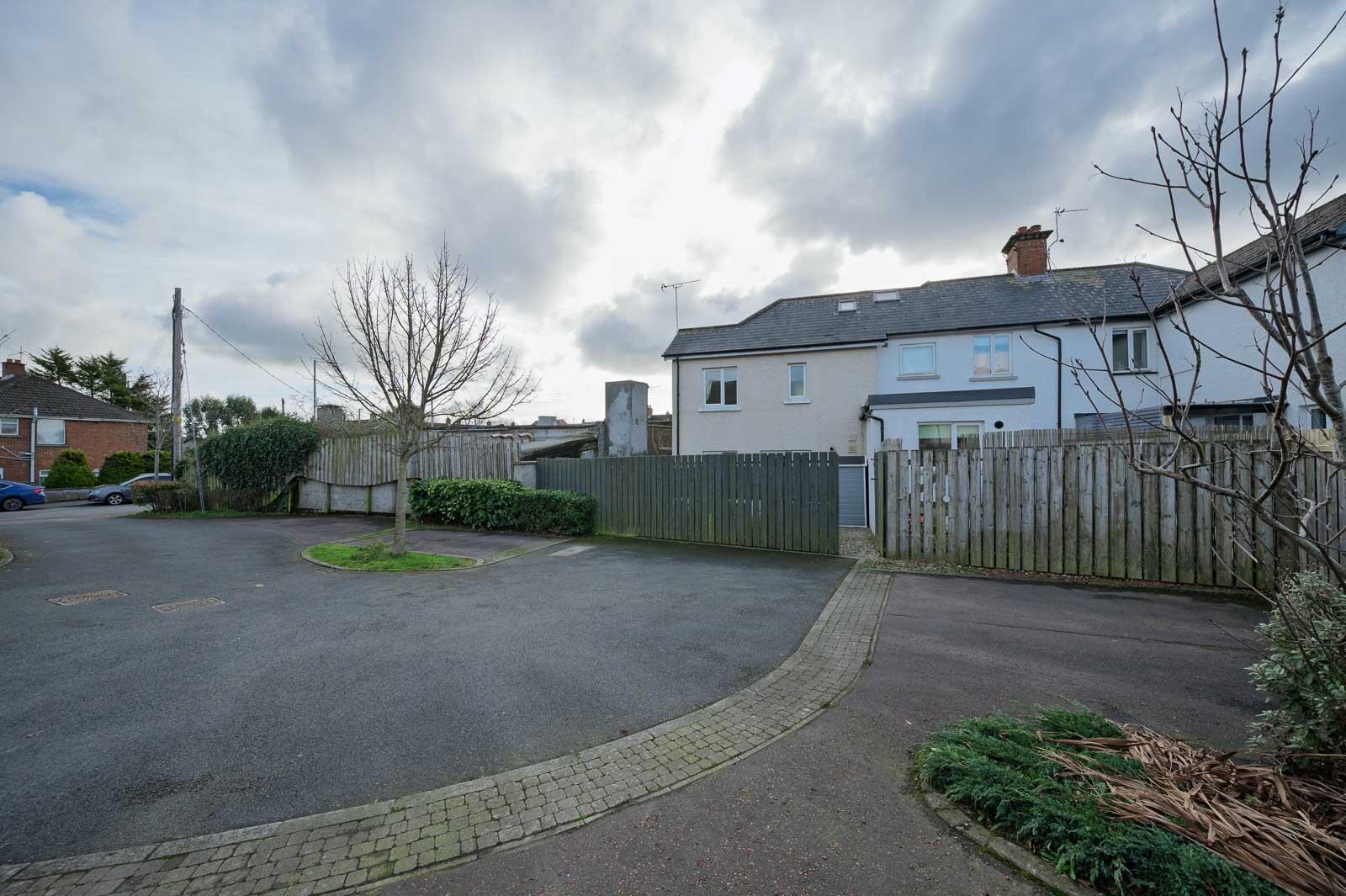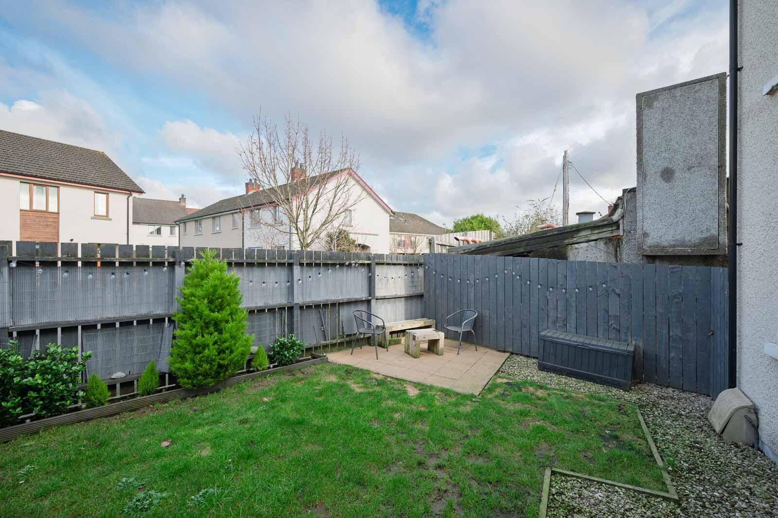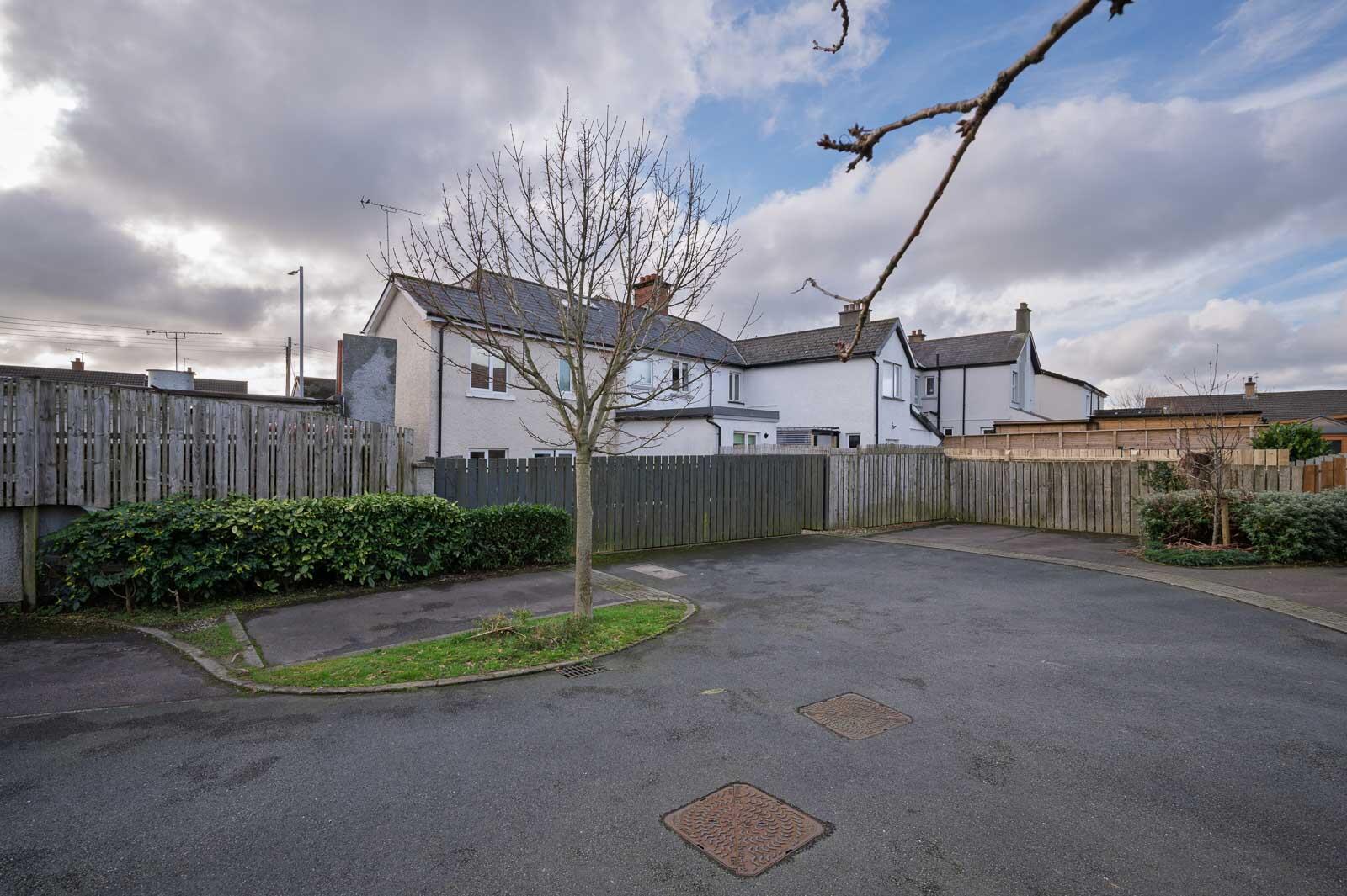 On the first floor, there are two well-proportioned bedrooms, including the principal bedroom to the front with built-in robes, and a second bedroom overlooking the rear garden. The family bathroom is fitted with a modern white suite incorporating a P-shaped bath with thermostatically controlled shower. Externally, the property benefits from two private parking spaces at the back of the property with additional guest parking and an enclosed rear garden laid in lawn and paving, ideal for low-maintenance outdoor enjoyment.