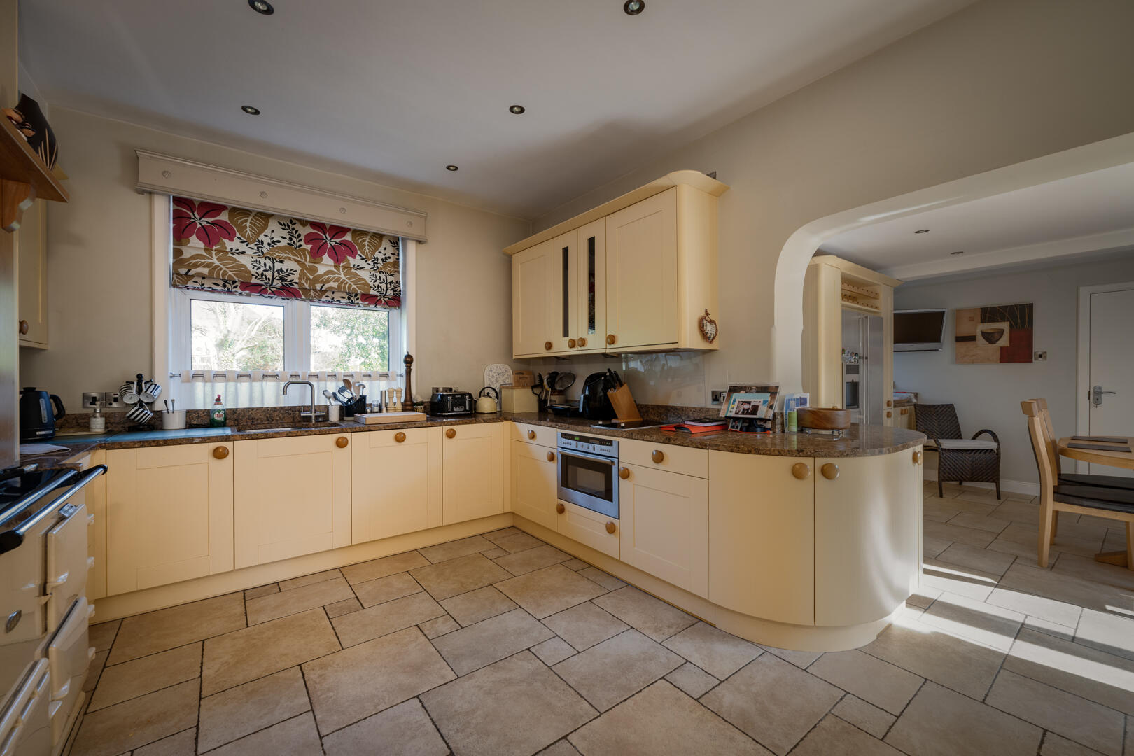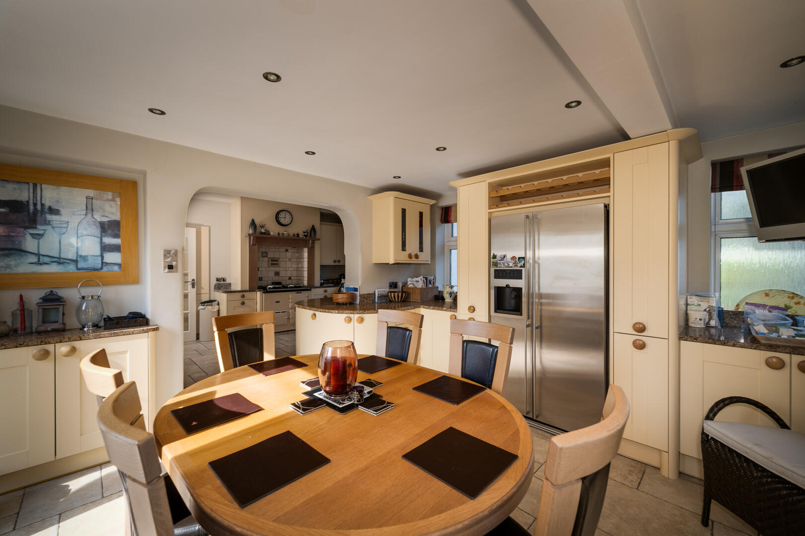 The family room enjoys pleasant views over the mature gardens, creating a strong connection between indoor and outdoor living. Complementing these reception spaces is a modern, well-fitted kitchen with dining area - designed to meet the needs of contemporary family life while still sitting comfortably within the character of the home.