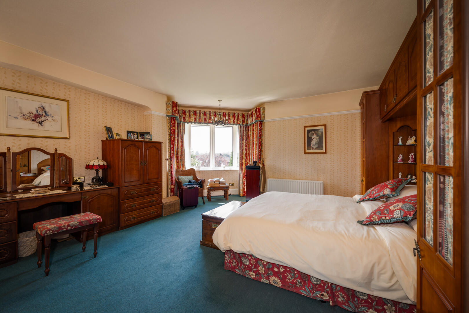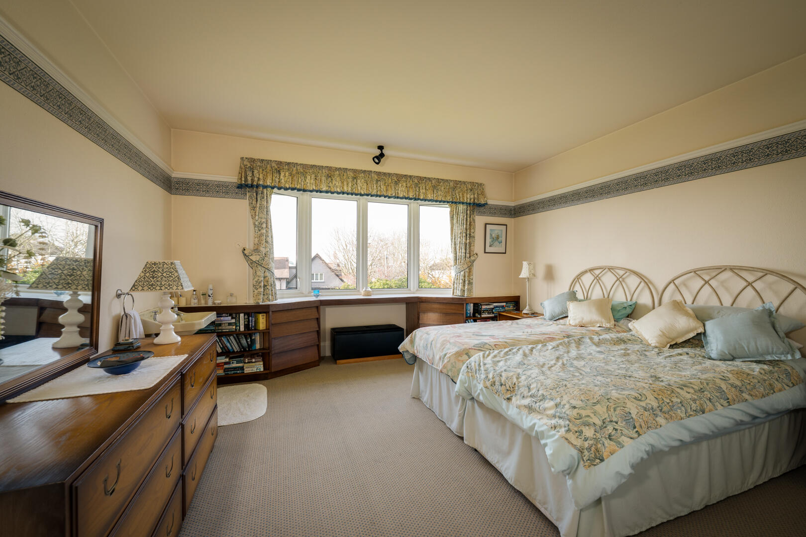 Vanity unit, bay window with mature outlook to the front of the property and to Maxwell Park, vanity unit, drawer units, picture rail, built-in wardrobes.