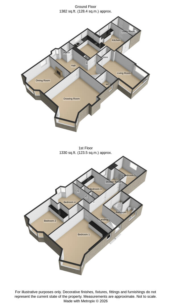 Five well-proportioned bedrooms offering excellent flexibility for families or home working