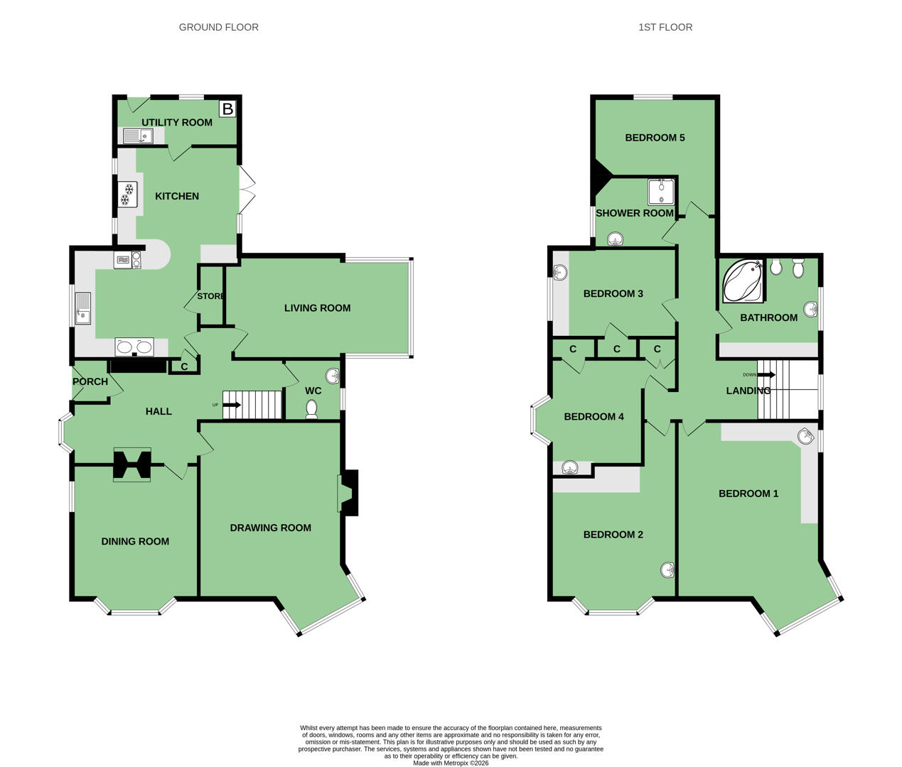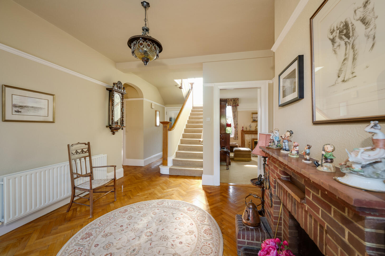 Upstairs, five well-proportioned bedrooms offer flexibility for families, guests or home working, with a layout that balances space and privacy. Outside, the gardens are mainly laid in lawns, providing privacy and practicality for children, pets and entertaining. A detached double garage adds further convenience with valuable storage and parking.