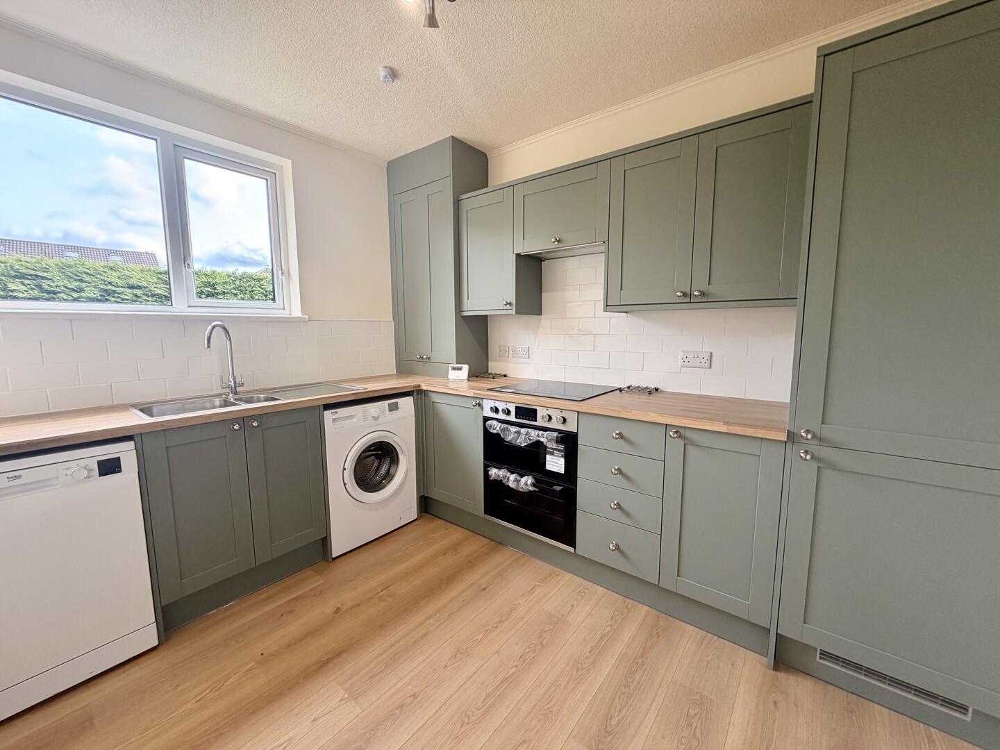 The apartment features two comfortable and bright bedrooms, with enough space to accommodate personal touches and furnishings. The moden bathroom is finished to an exceptional standard. As a tenant you also benefit from a private driveway with one assigned space along with a secure and spacious garage. To the rear of the property, you have communal green space which benefits from the sun whilst remaning private.