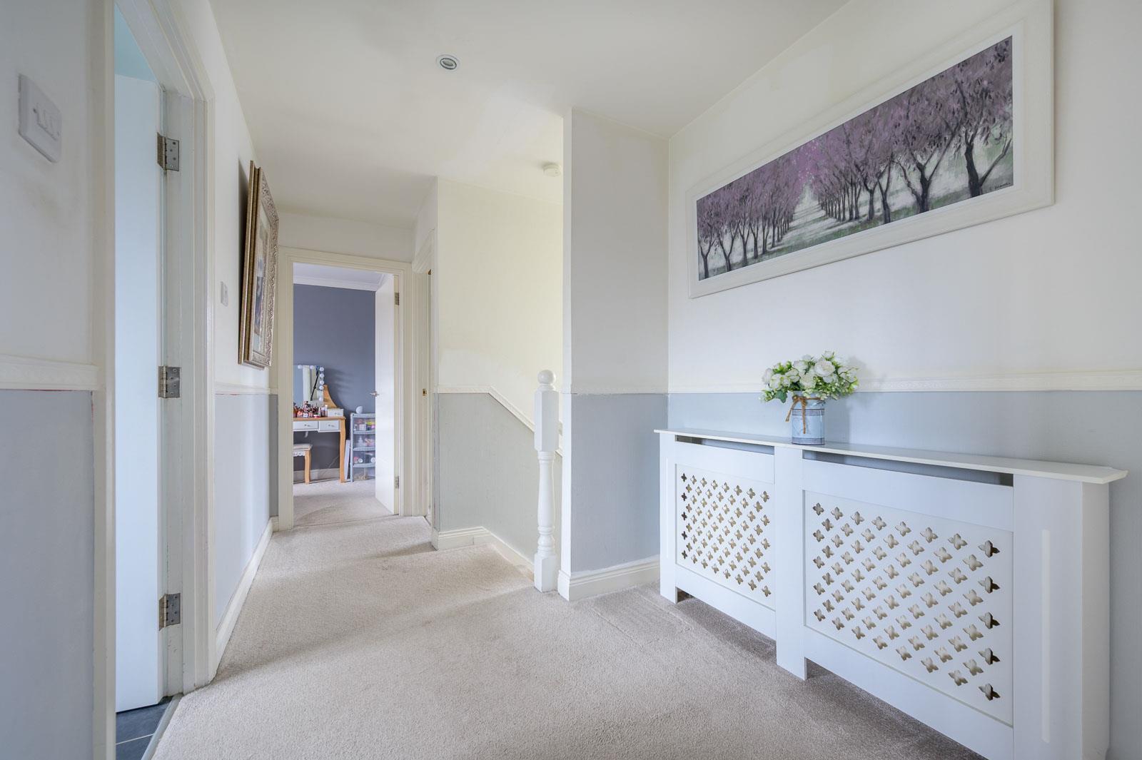 Access hatch to roofspace, roofspace accessed via pull-down ladder, linen press on landing with lagged copper cylinder, built-in shelving, excellent storage.