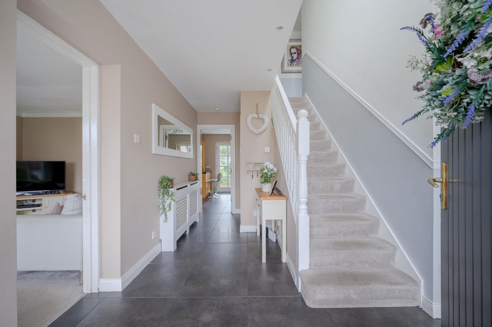 The property offers an immediate sense of arrival, with a welcoming entrance leading to an impressive reception hall. From here, the layout flows into a series of well-proportioned and versatile reception rooms, ideal for relaxing, entertaining or working from home. Each space benefits from natural light and pleasant garden views, creating a bright and inviting atmosphere throughout.