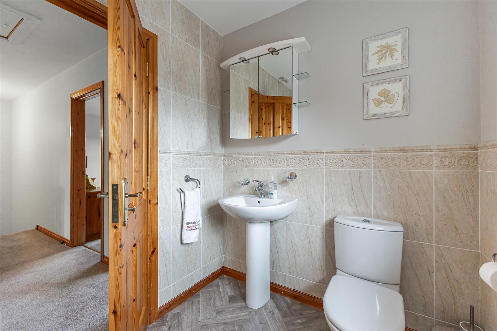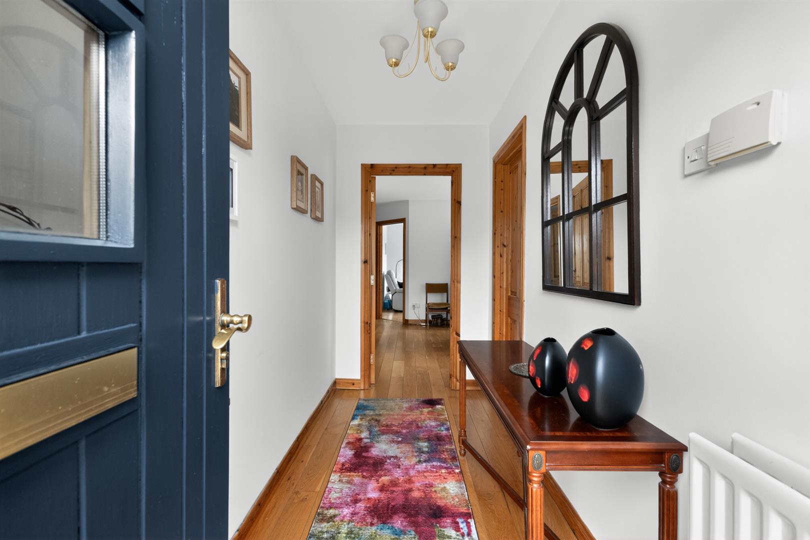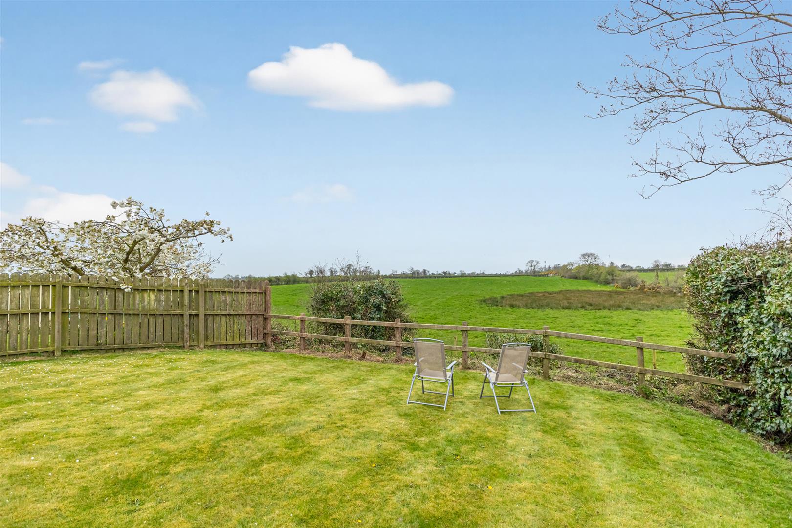 Outside does not disappoint either. There is a front garden in lawns and a driveway with ample parking for cars, caravans, boats, horse box, etc. At the rear is an outstanding mature garden in lawns with extensive paved patio barbecue area, excellent degree of privacy, south westerly aspect and outlook to the countryside making it an ideal space for children at play, outdoor entertaining or enjoying the sun. Other benefits include oil fired central heating, uPVC double glazed windows, downstairs WC, detached garage and pressurised water system.