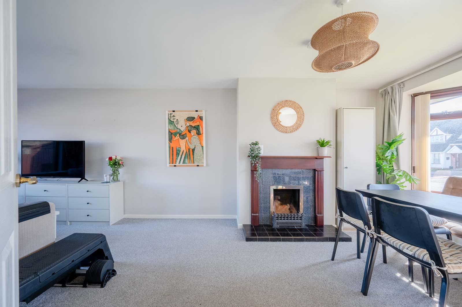 Open Plan Living Room with Dining Area and Open Fire
