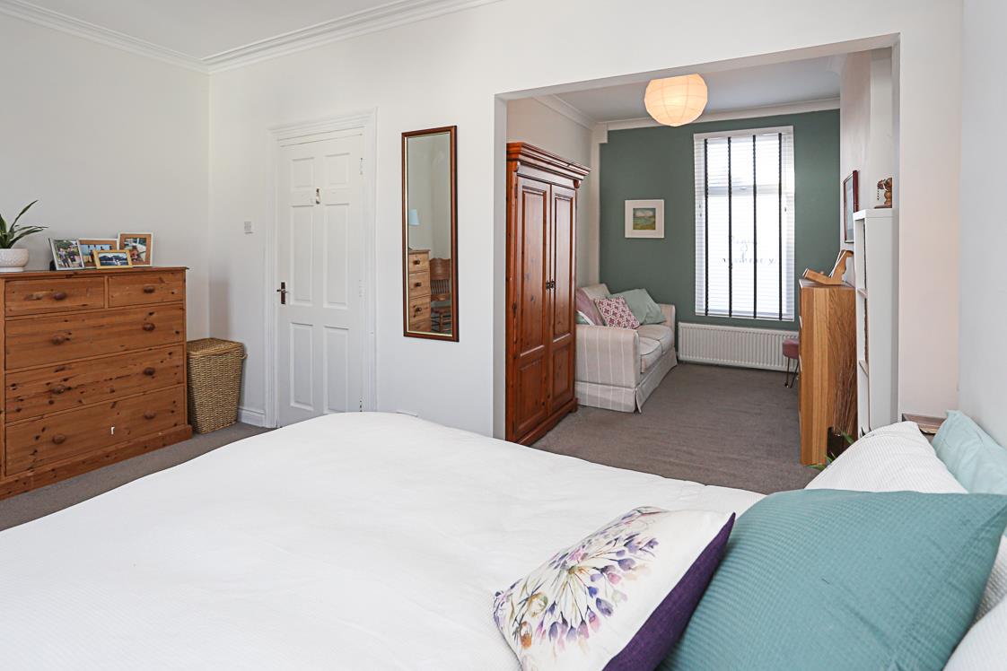 Mature outlook to front along Park Avenue to Ward Park, cupboard suite side of chimney breast.