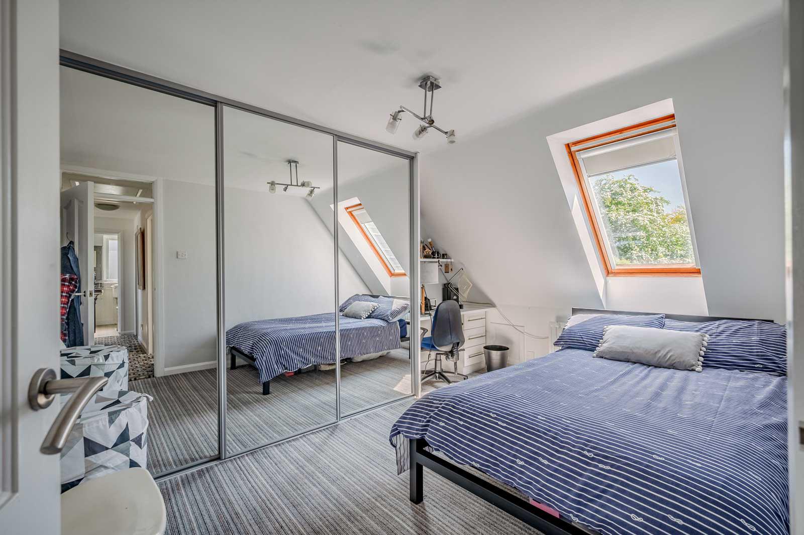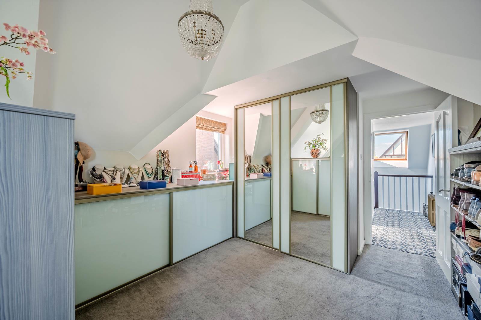 Large built-in wardrobe with mirror fronted sliding doors.