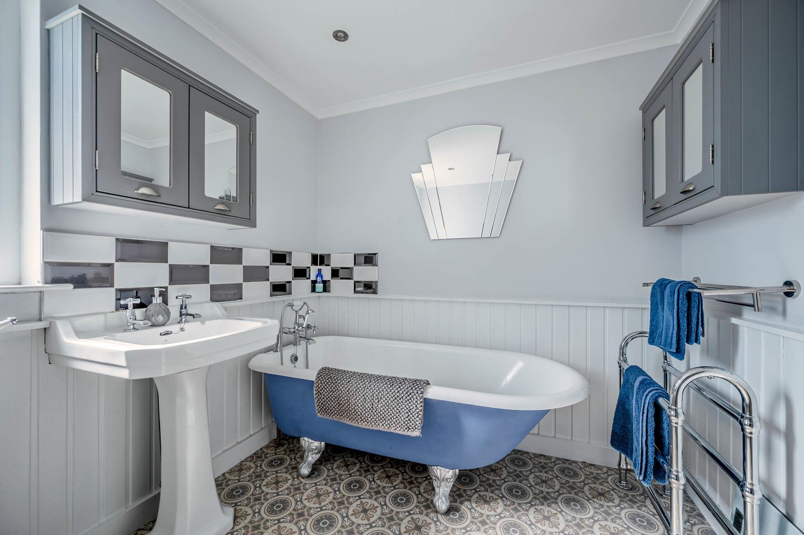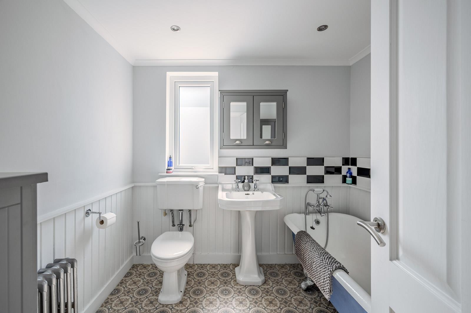 First Floor Bathroom with Three Piece Suite to Include Free Standing Claw Foot Roll Top Bath