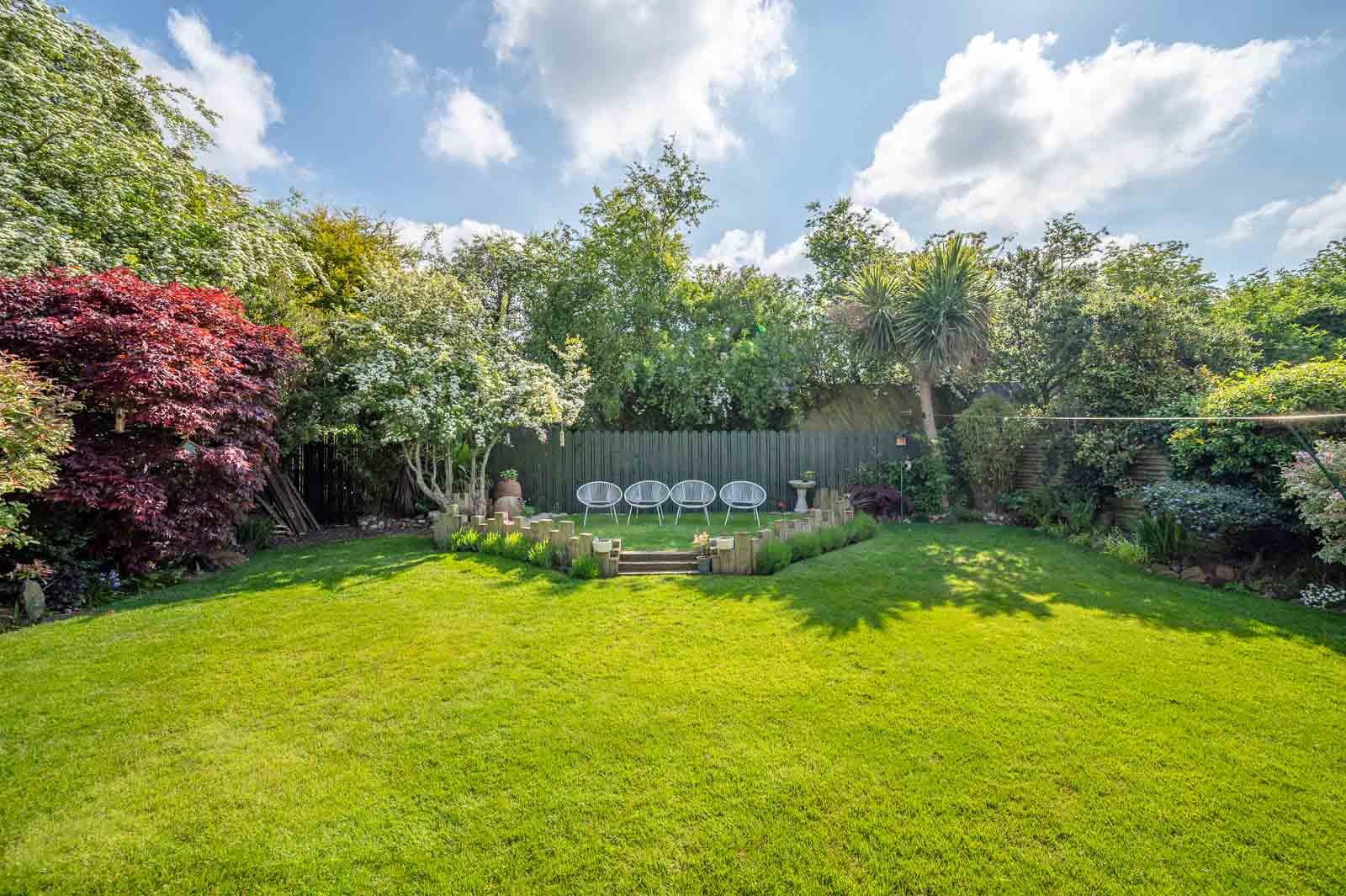 Fantastic fully enclosed rear garden with extensive composite decked terrace, lawns, attractive flowerbeds in plants and shrubs, outside tap to side, excellent degree of privacy making it ideal for children at play, outdoor entertaining or enjoying the sun.