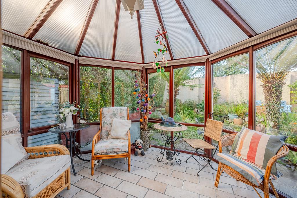Fully tiled floor, hardwood double glazed door to outside, private aspect overlooking the rear garden.