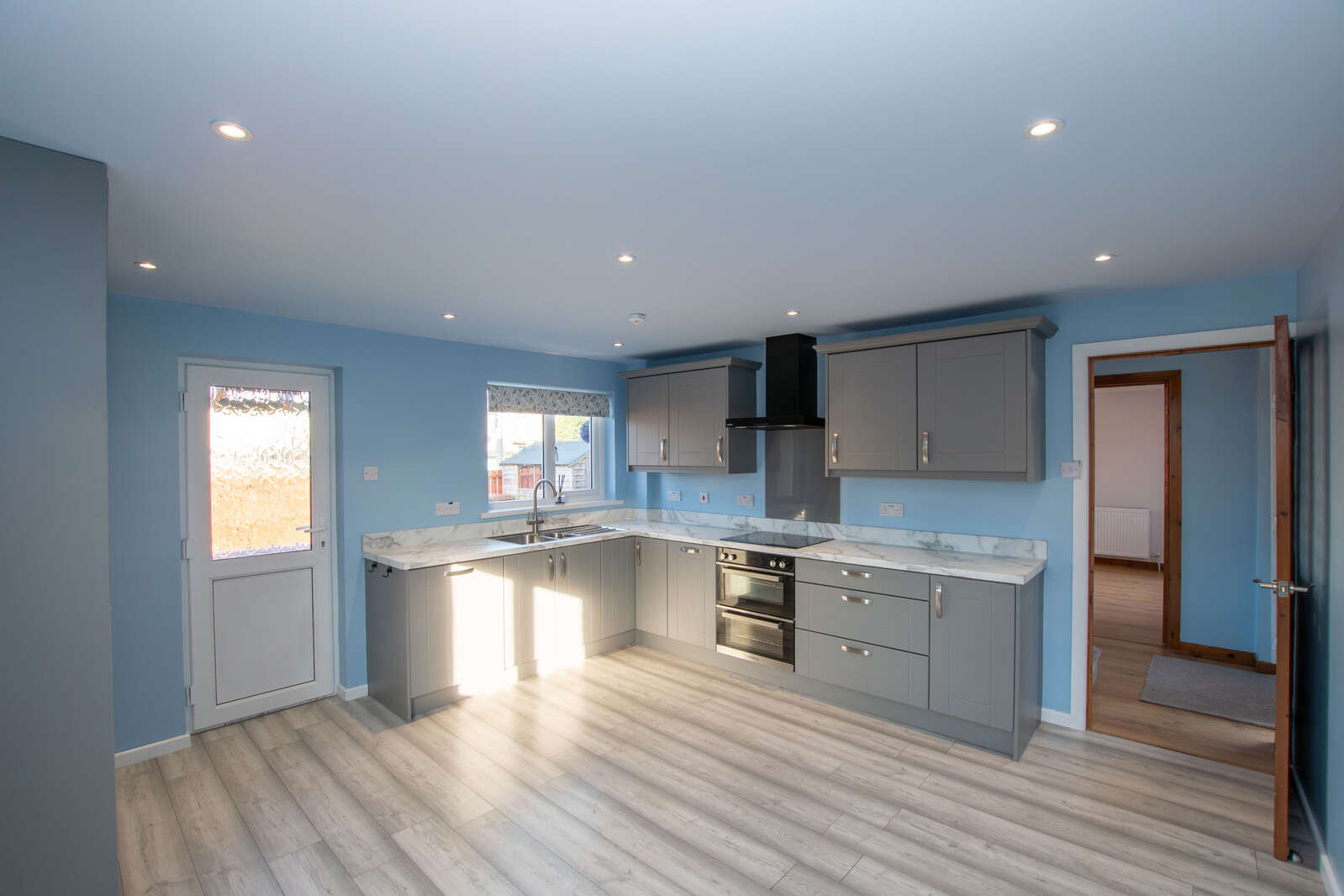 The ground floor benefits from a spacious living-room with open fire and a modern kitchen & dining area with built in oven, hob and dishwasher.