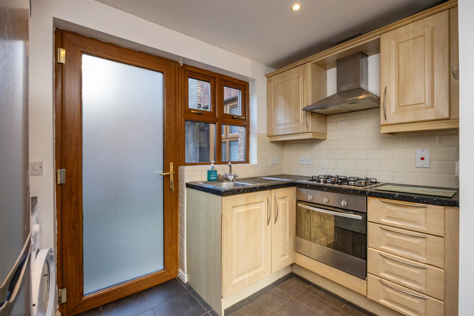 Range of high and low level units, single drainer stainless steel sink unit, stainless steel oven and gas 4 ring hob, part tiled walls, fully tiled walls, gas boiler, plumbing for washing machine.